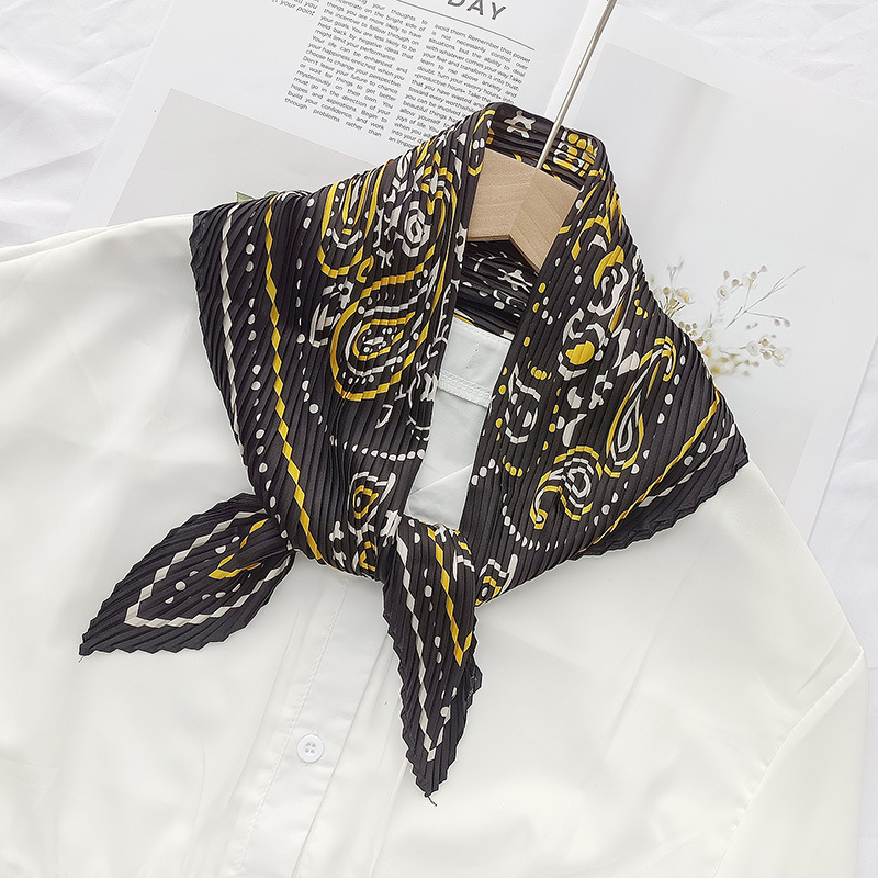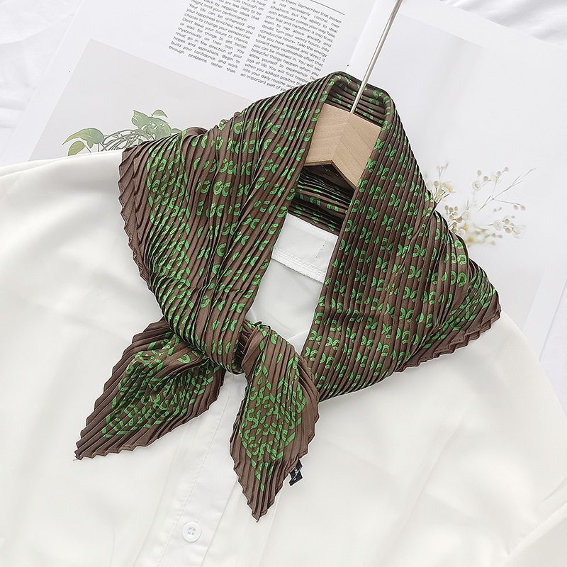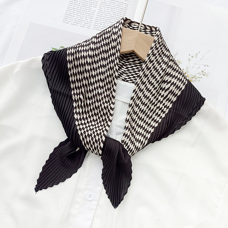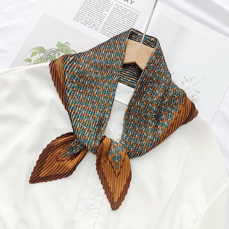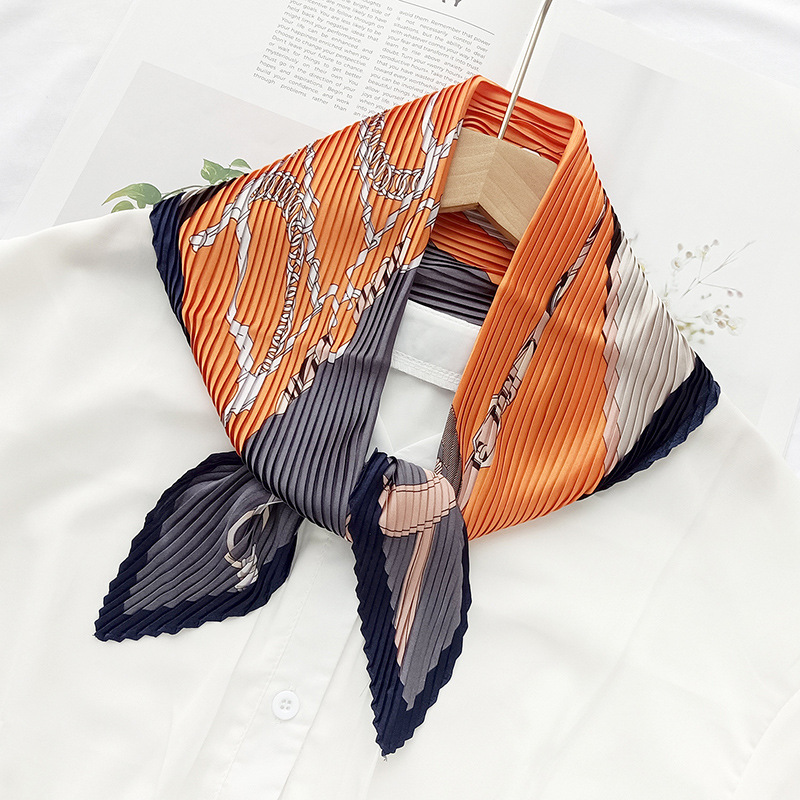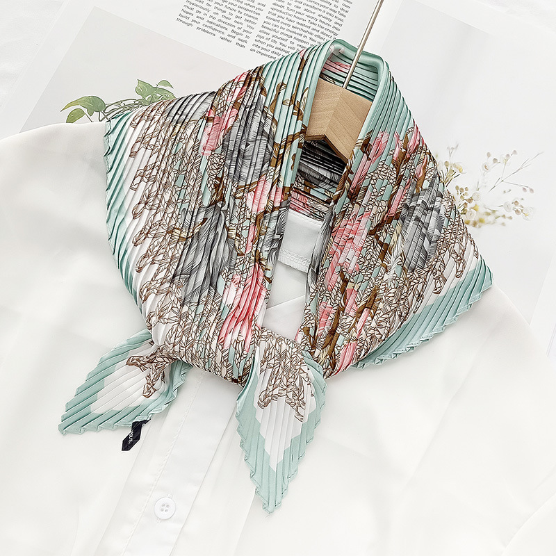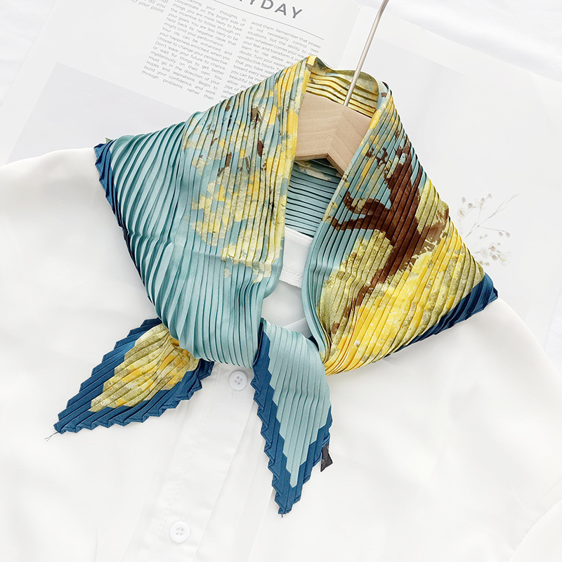 2025 봄 여름 신상 주름 실크 스카프 쉬폰 프린트 주름 스카프 한국 스타일 장식용 직업용 스카프 머리띠