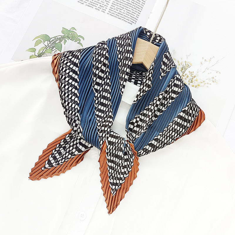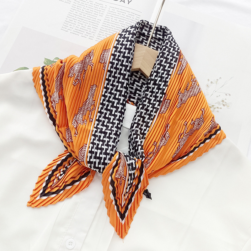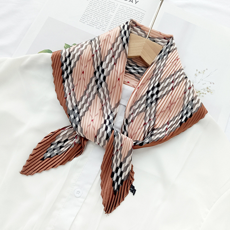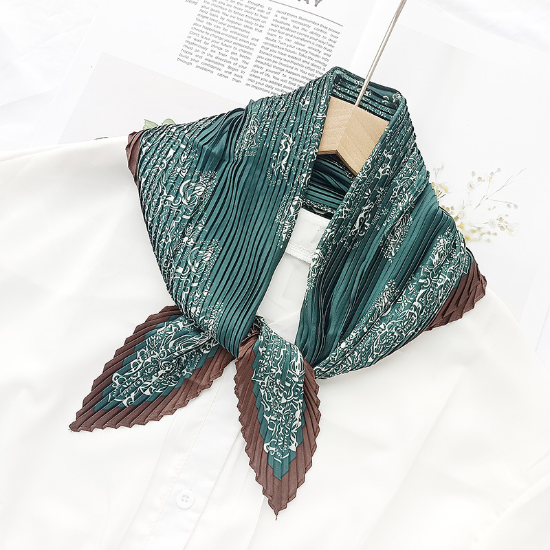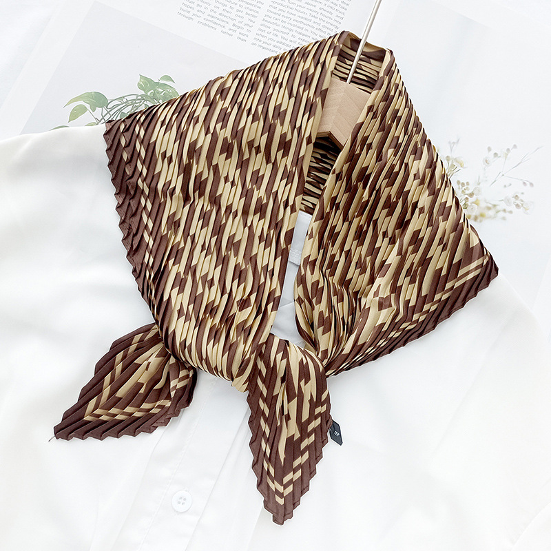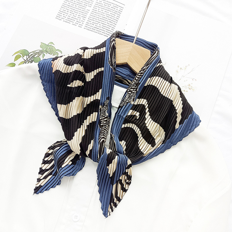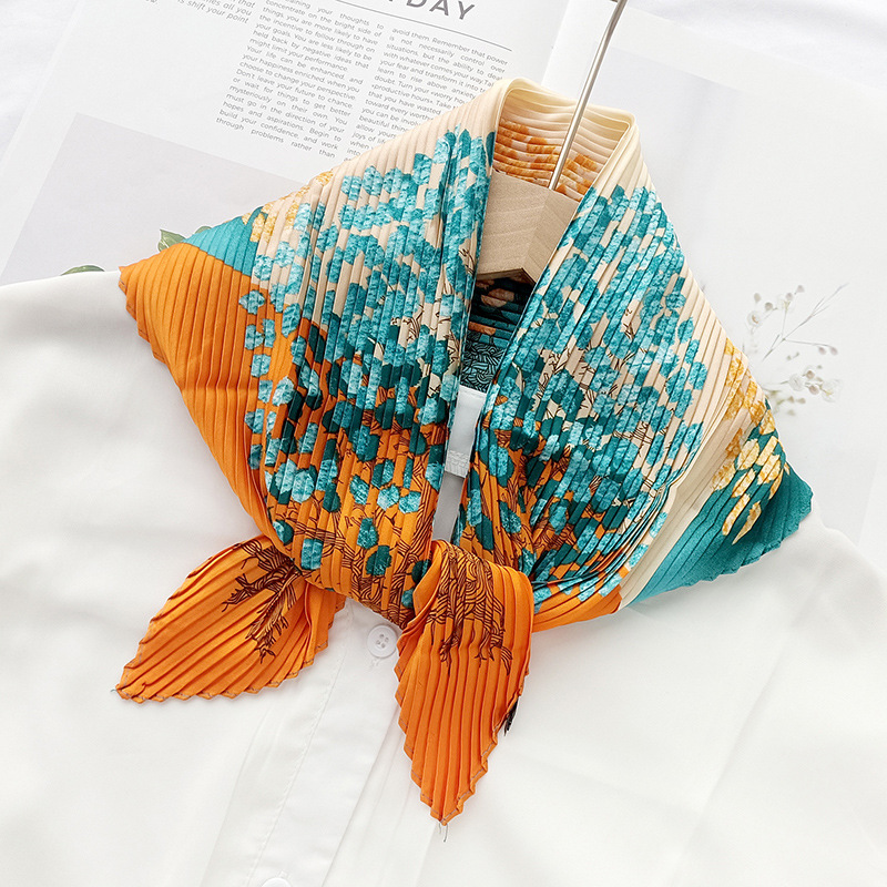 2025 봄 여름 신상 주름 실크 스카프 쉬폰 프린트 주름 스카프 한국 스타일 장식용 직업용 스카프 머리띠