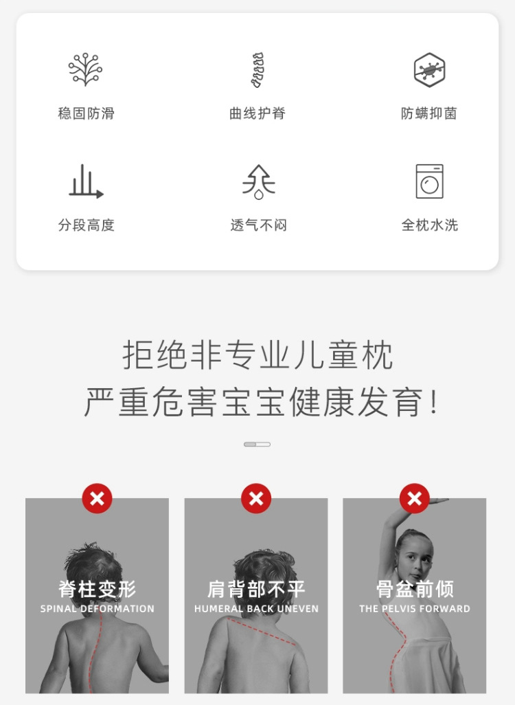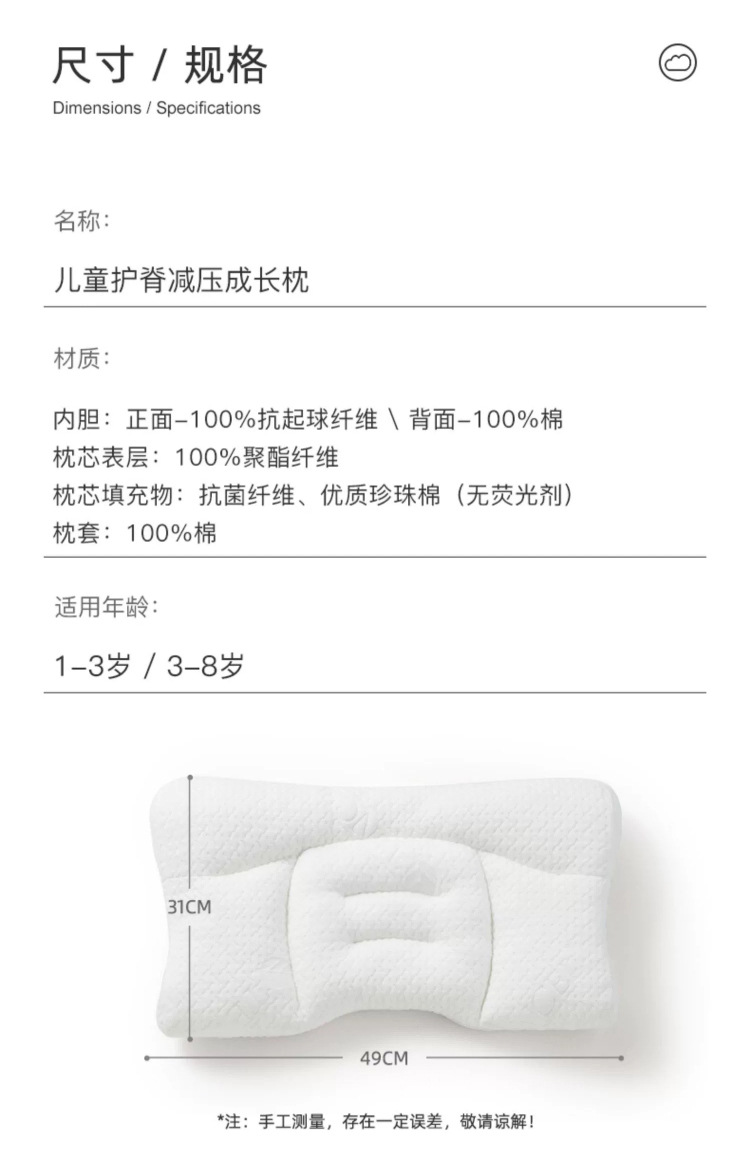 • hoag 3섹션 어린이베개(8~14세) + 양면베갯잇