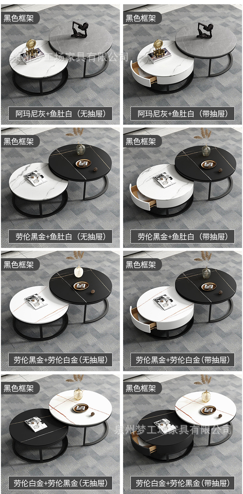북유럽 거실 크기 라운드 대리석 커피 테이블 보관 커피 테이블 서랍 빛 럭셔리 바위 판자 커피 테이블 조합스토어 가기