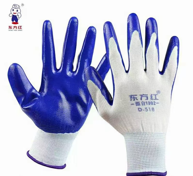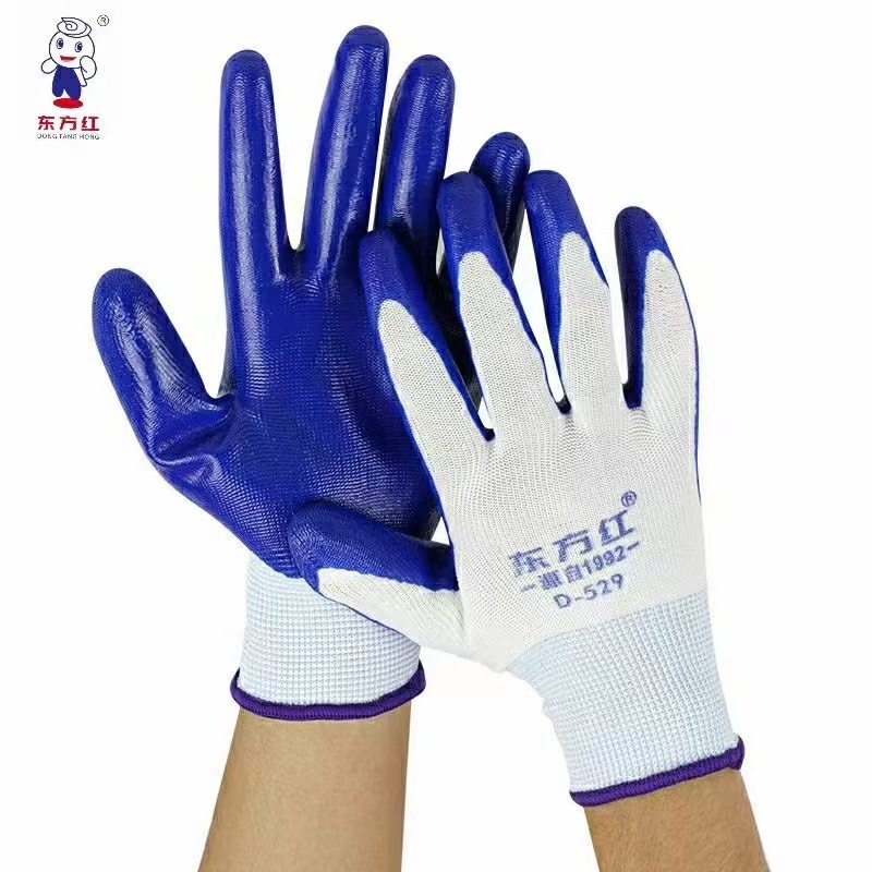 오리엔탈 레드 블루와 화이트 접착 장갑 자동차 수리 취급 두꺼운 내마모성 디핑 12 켤레 장갑 공장 도매스토어 가기