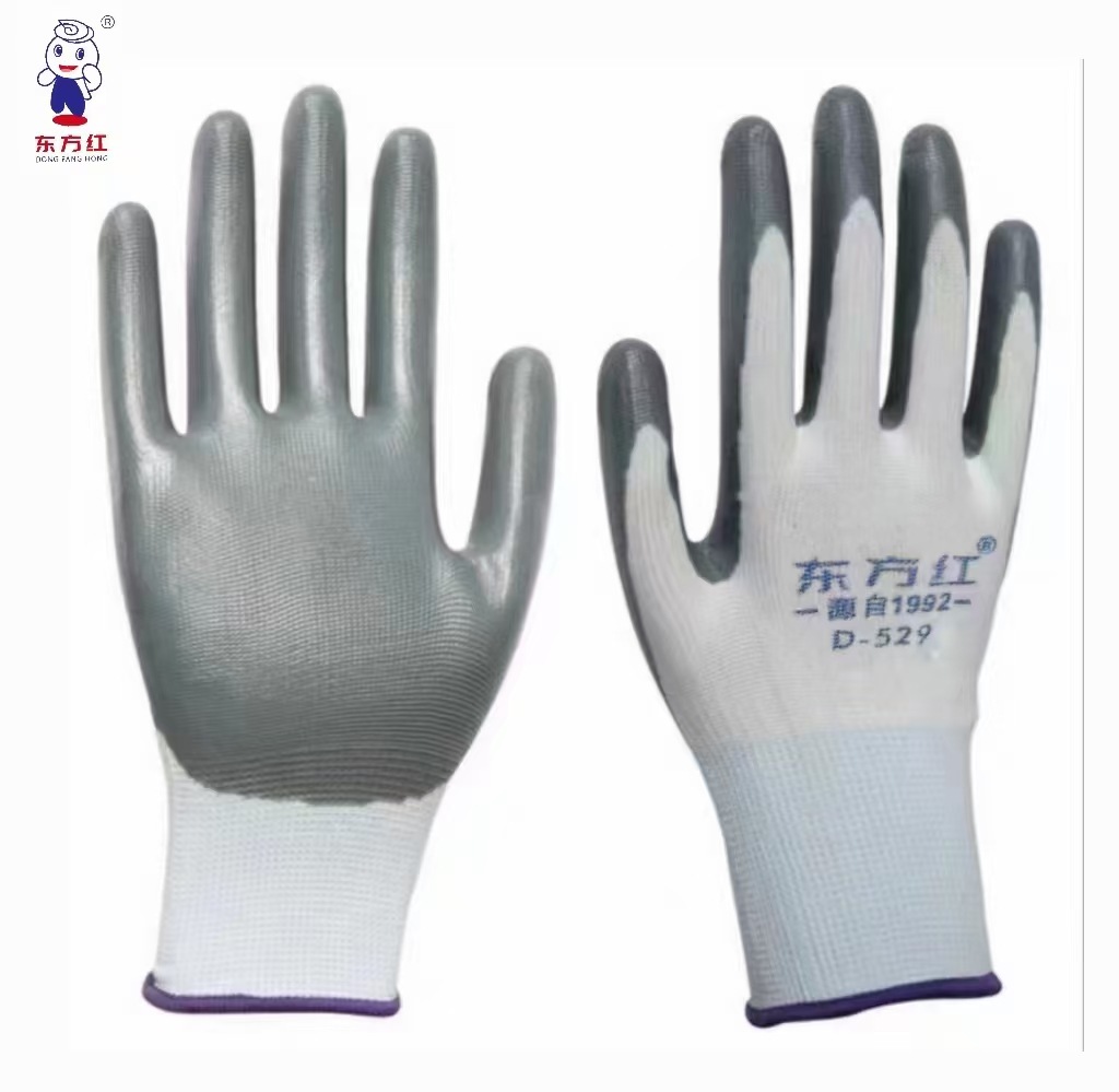 오리엔탈 레드 블루와 화이트 접착 장갑 자동차 수리 취급 두꺼운 내마모성 디핑 12 켤레 장갑 공장 도매