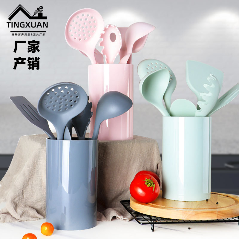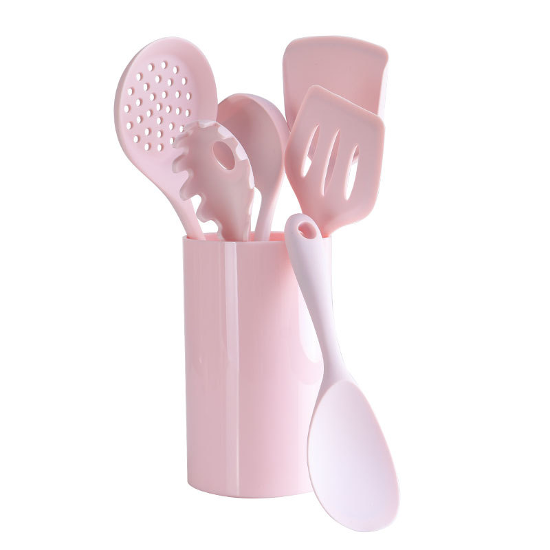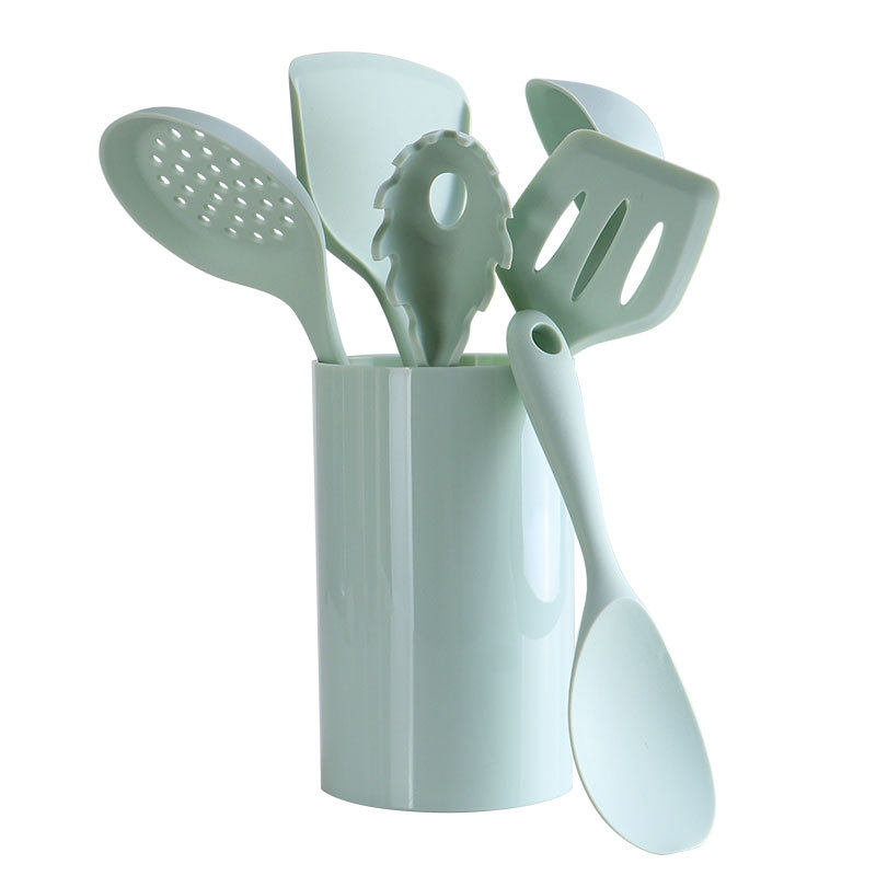 새로운 실리콘 주방 용품 세트 주걱 녹색 논스틱 주걱 스푼 6 피스 소쿠리 주방 요리 도구