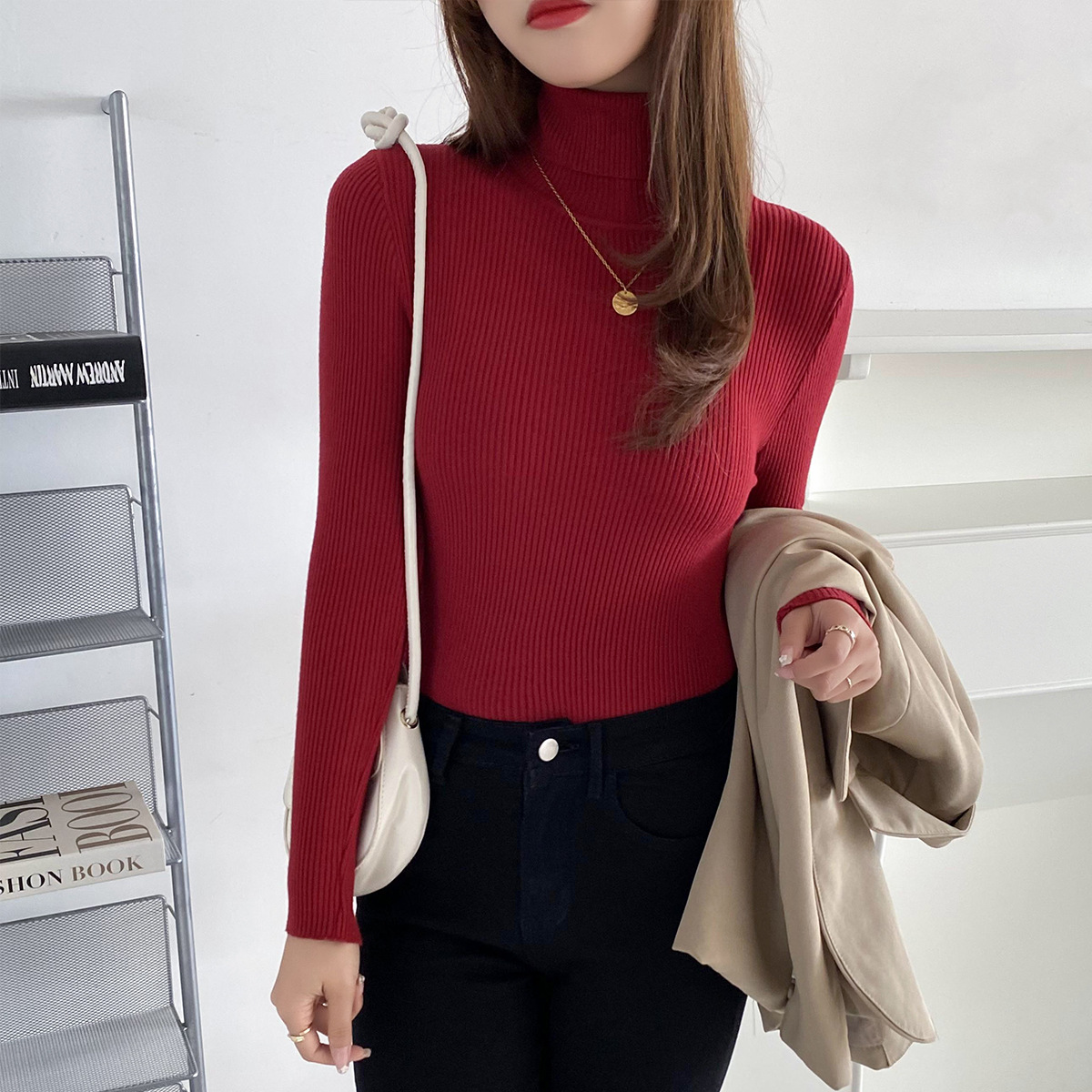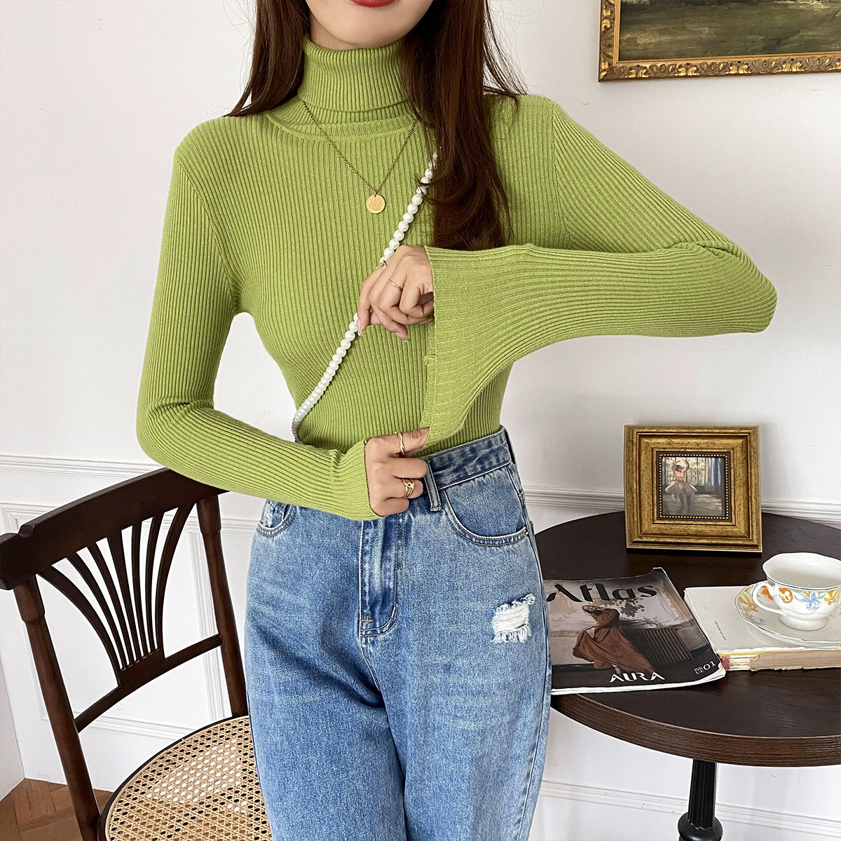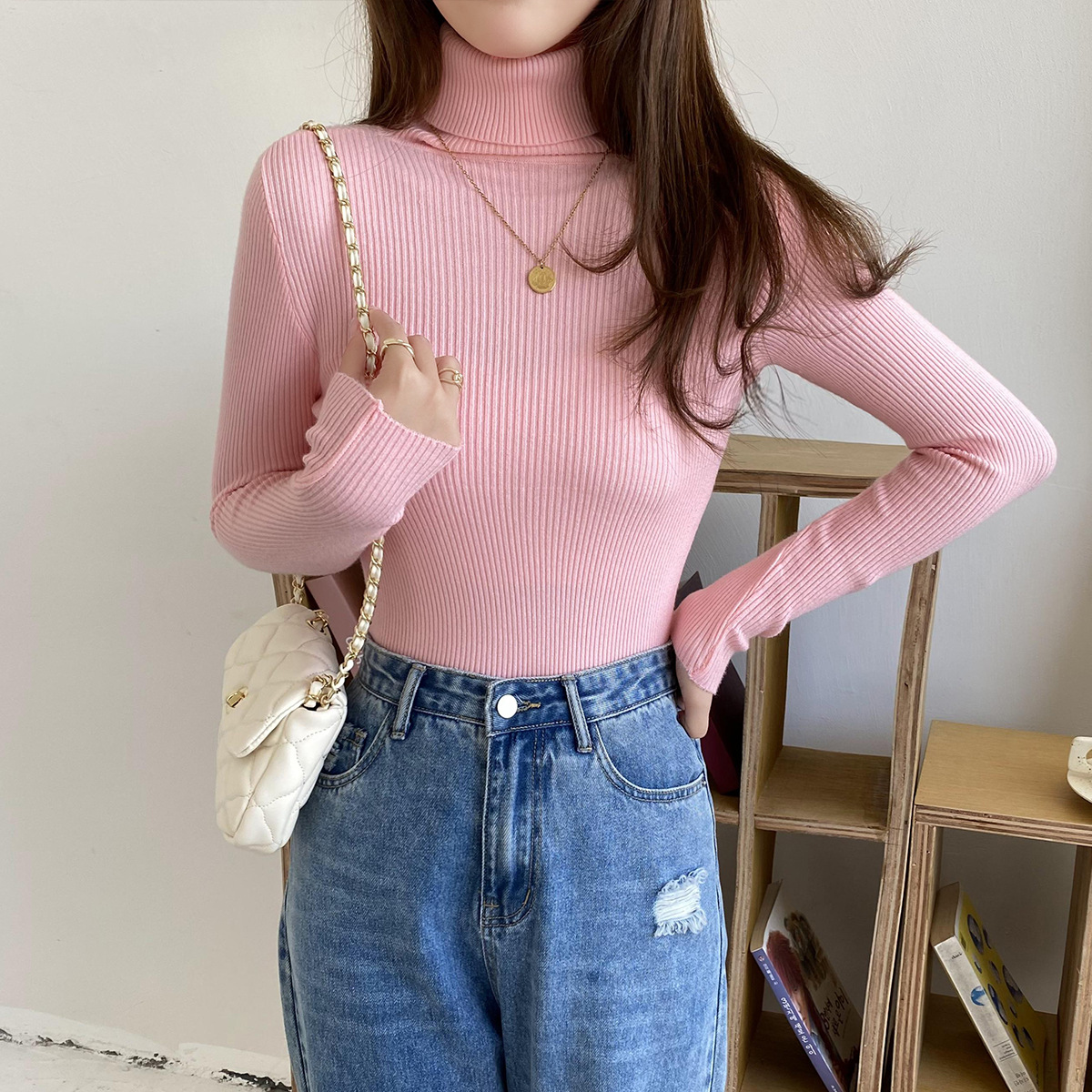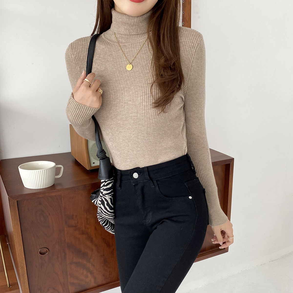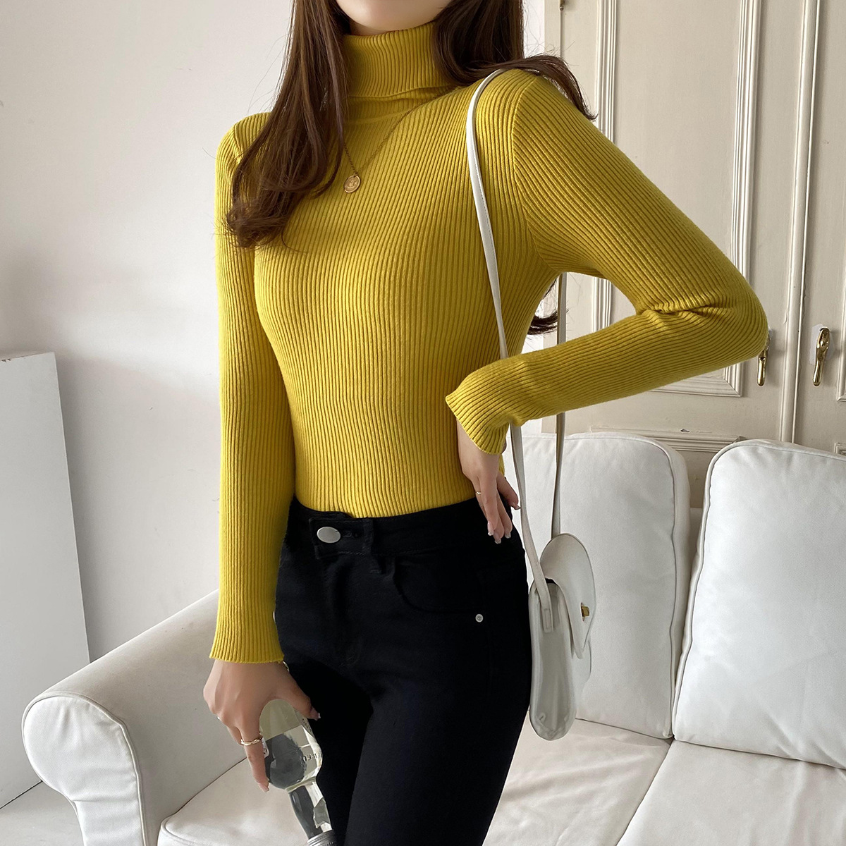 가을과 겨울 2024 새로운 여자 한국 단색 기본 올매치 두꺼운 니트 셔츠 높은 칼라 긴 소매베이스 셔츠스토어 가기