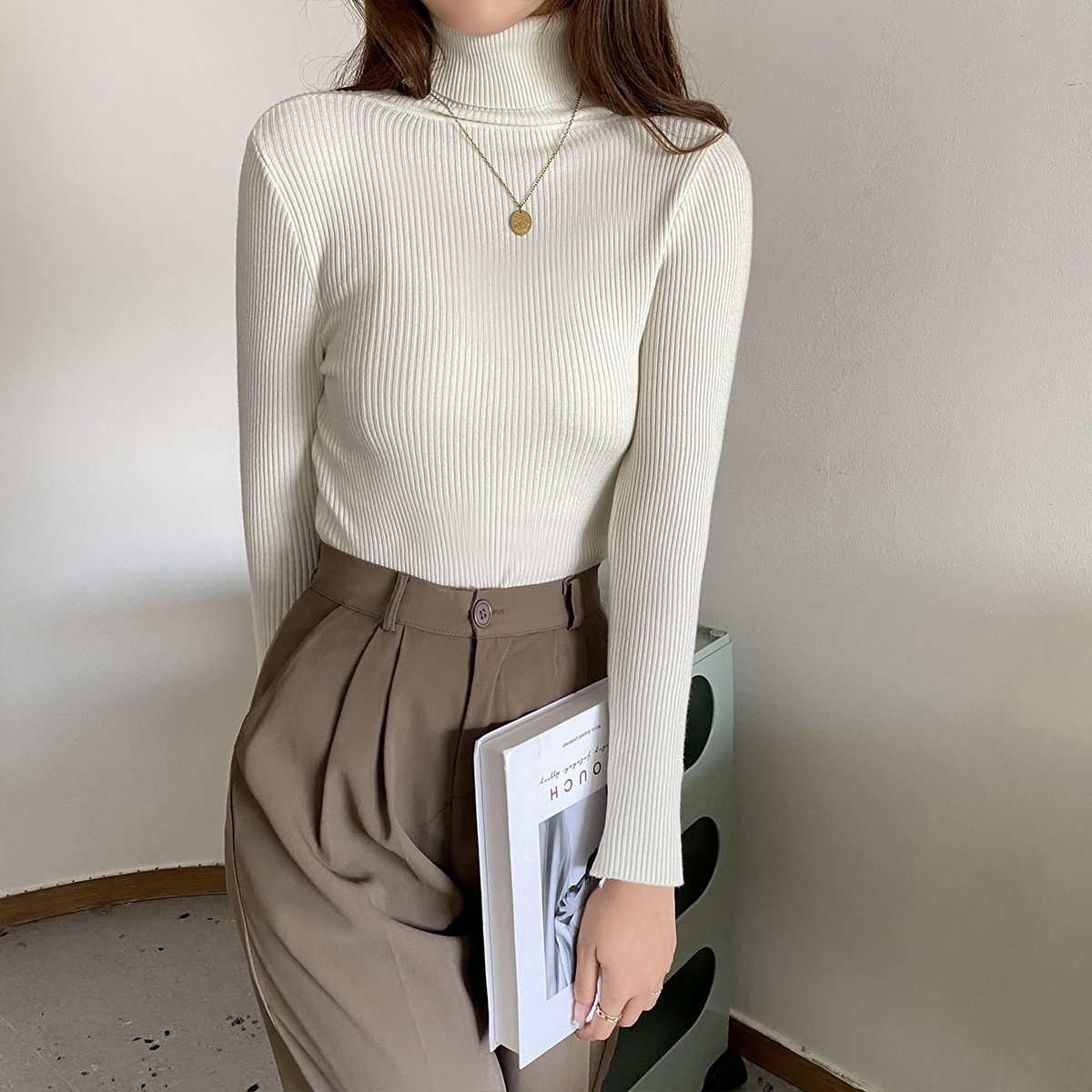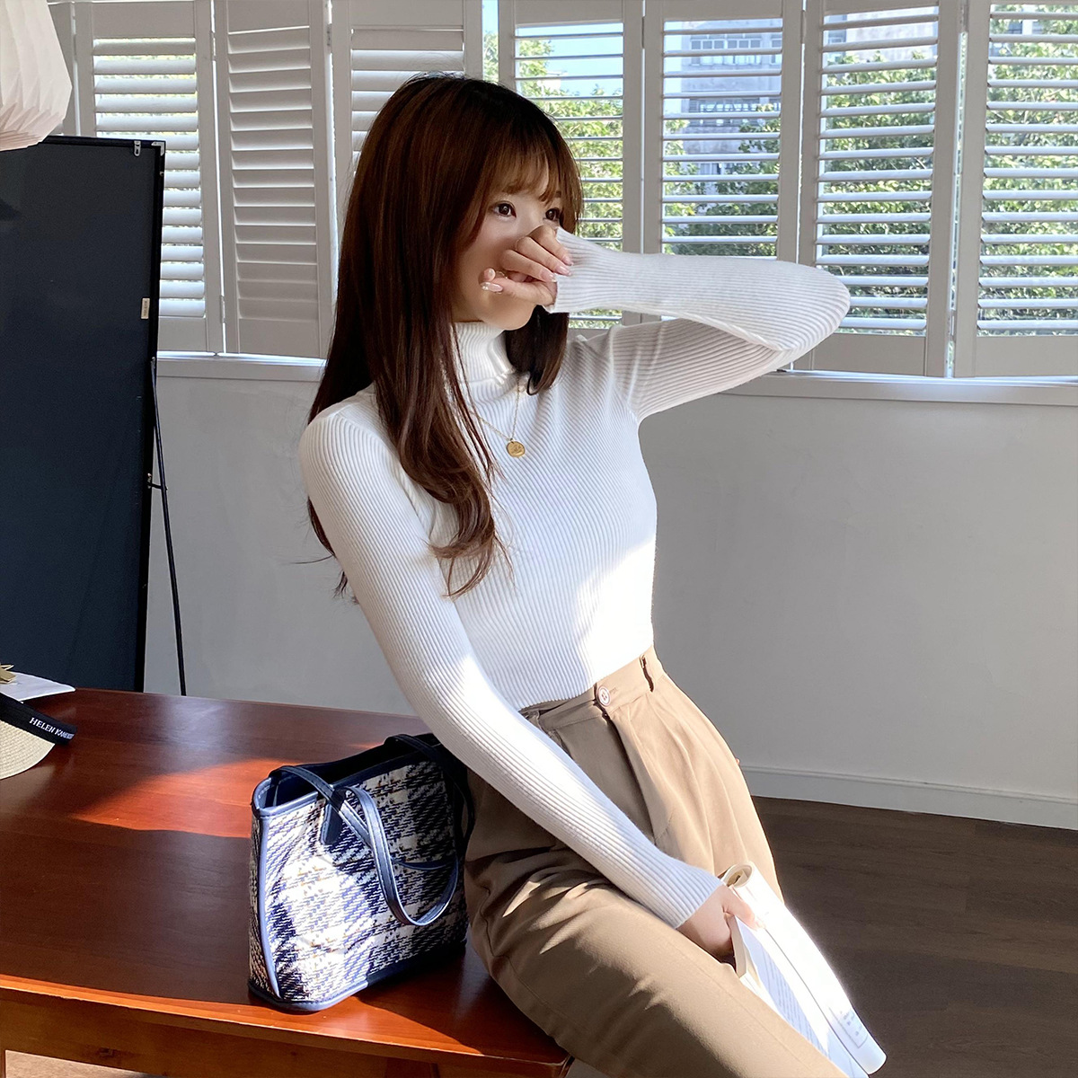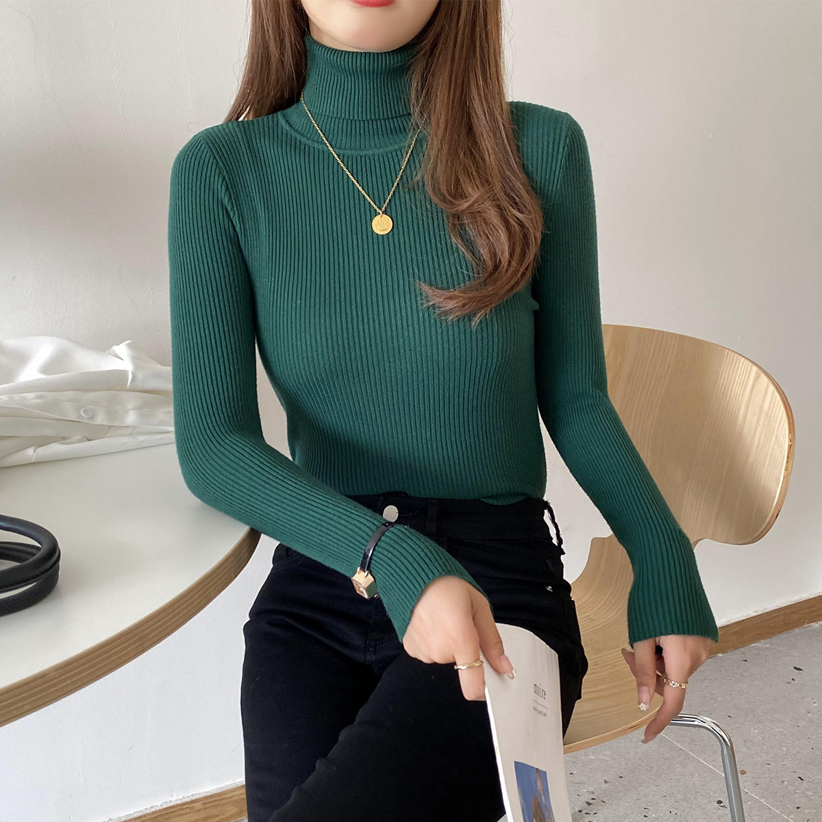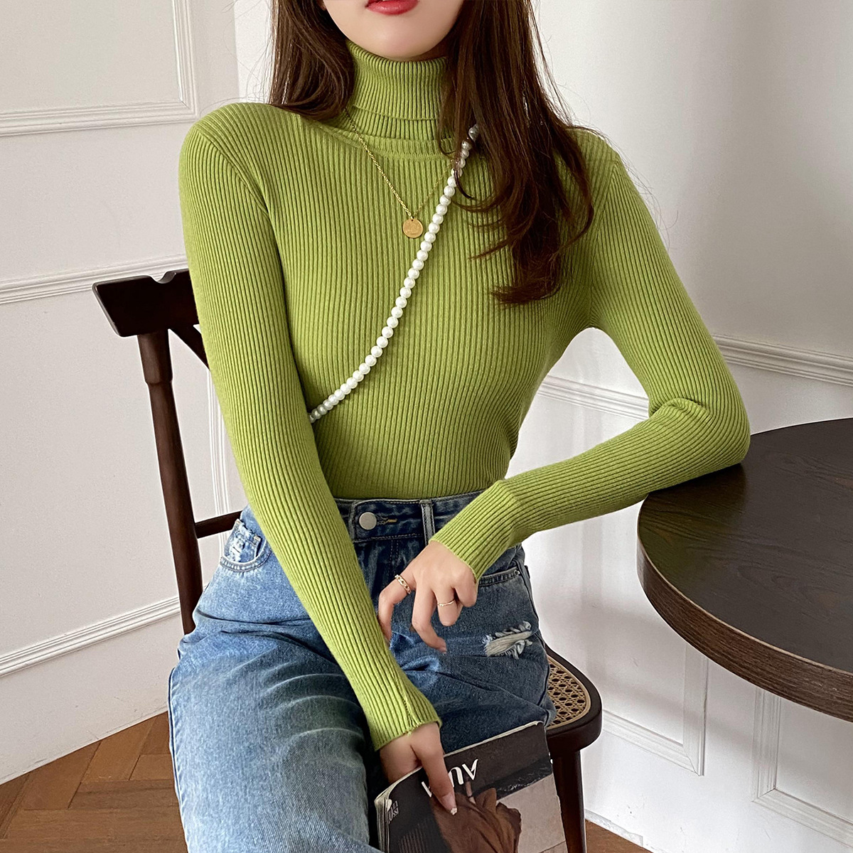 가을과 겨울 2024 새로운 여자 한국 단색 기본 올매치 두꺼운 니트 셔츠 높은 칼라 긴 소매베이스 셔츠스토어 가기