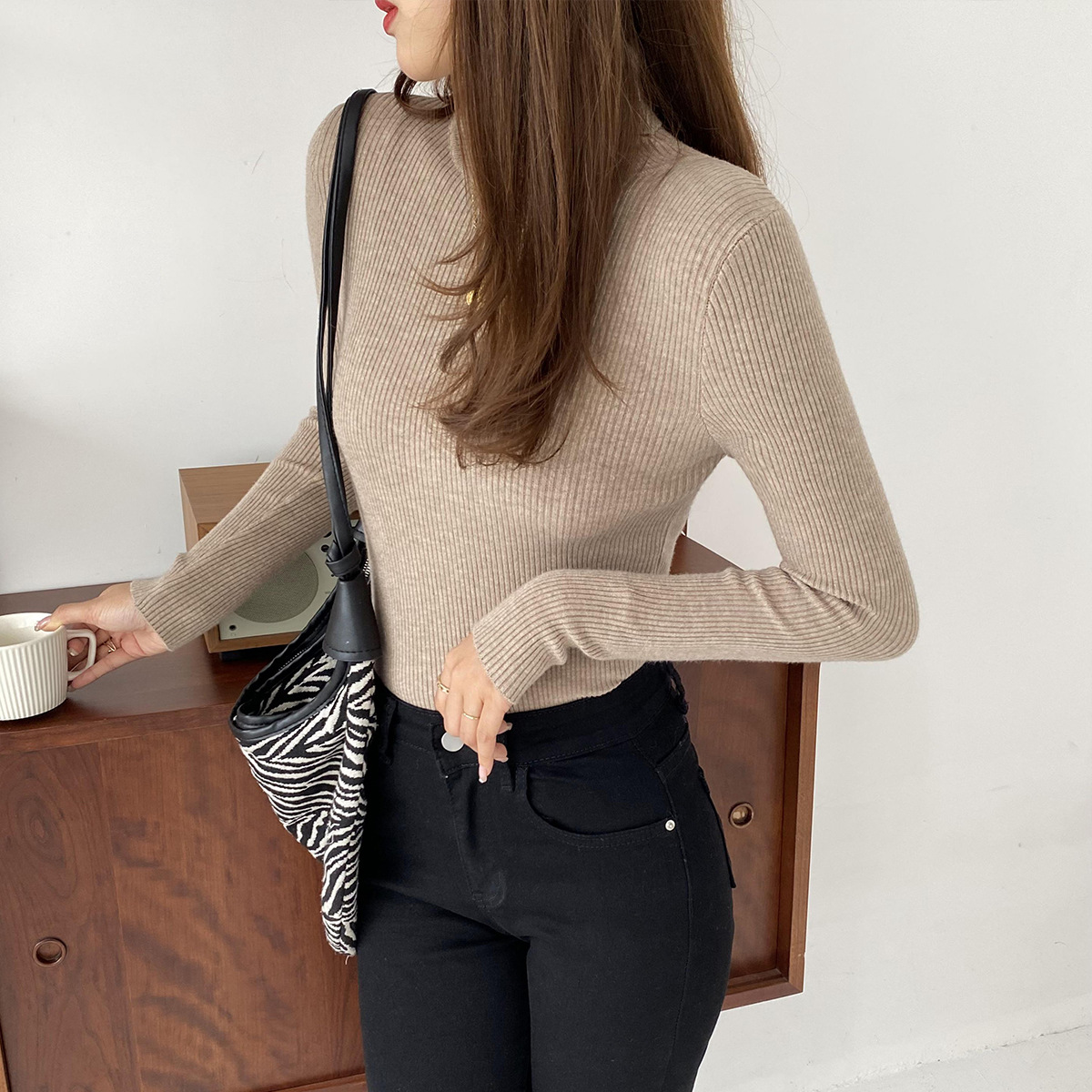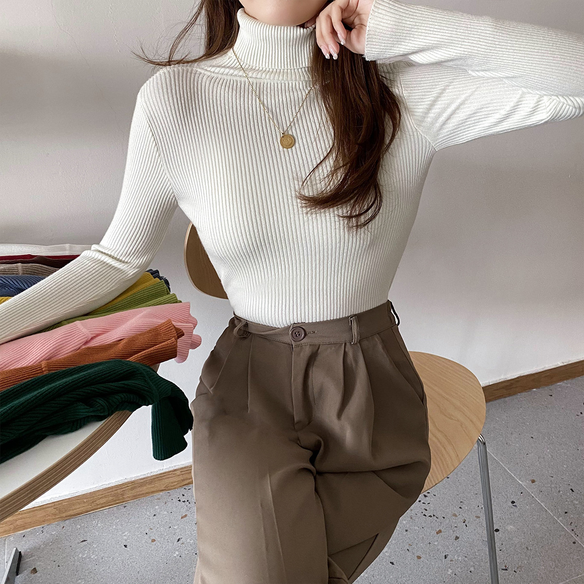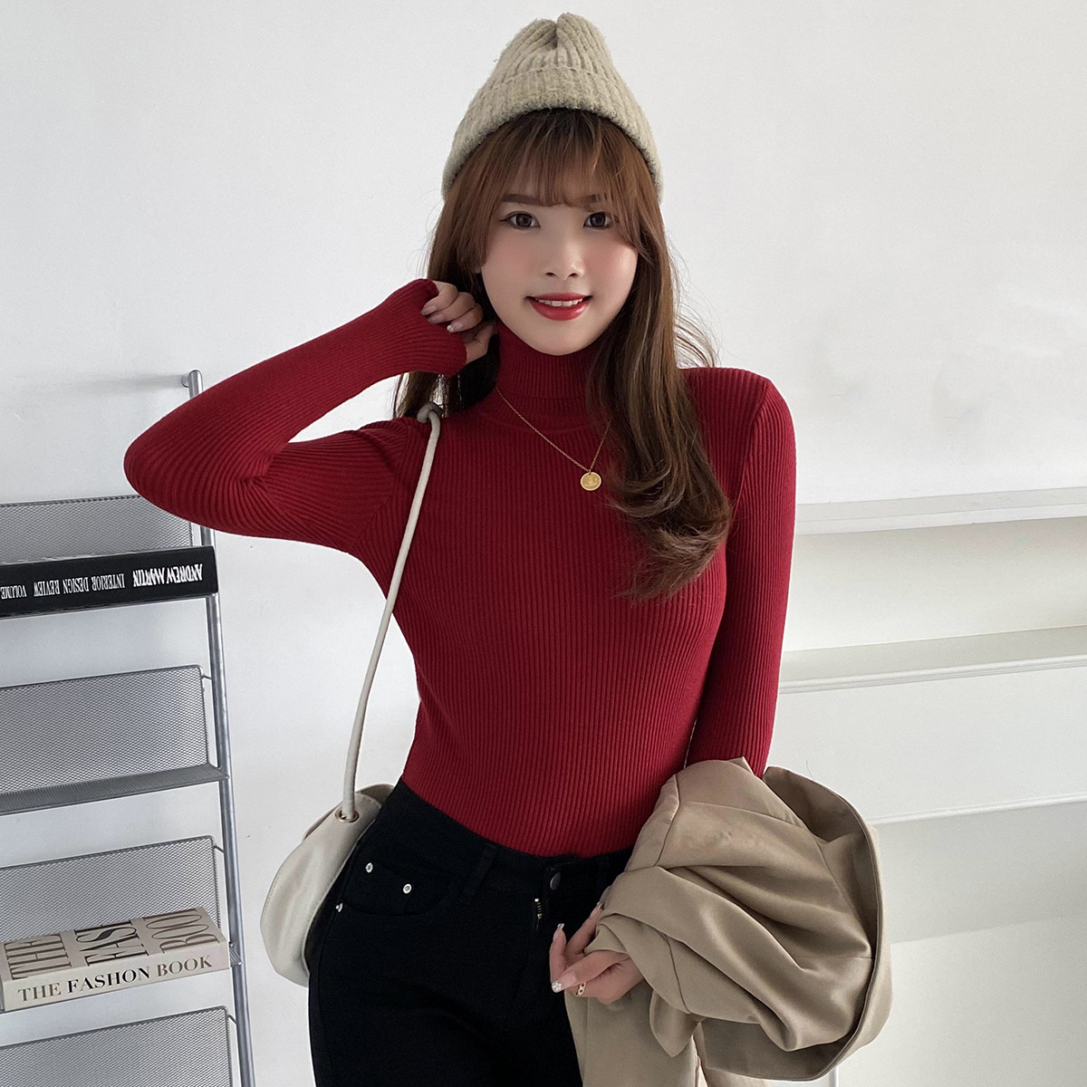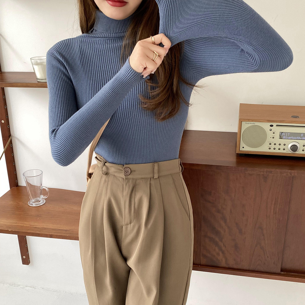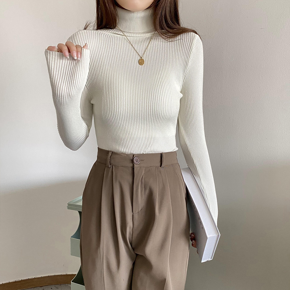 가을과 겨울 2024 새로운 여자 한국 단색 기본 올매치 두꺼운 니트 셔츠 높은 칼라 긴 소매베이스 셔츠스토어 가기