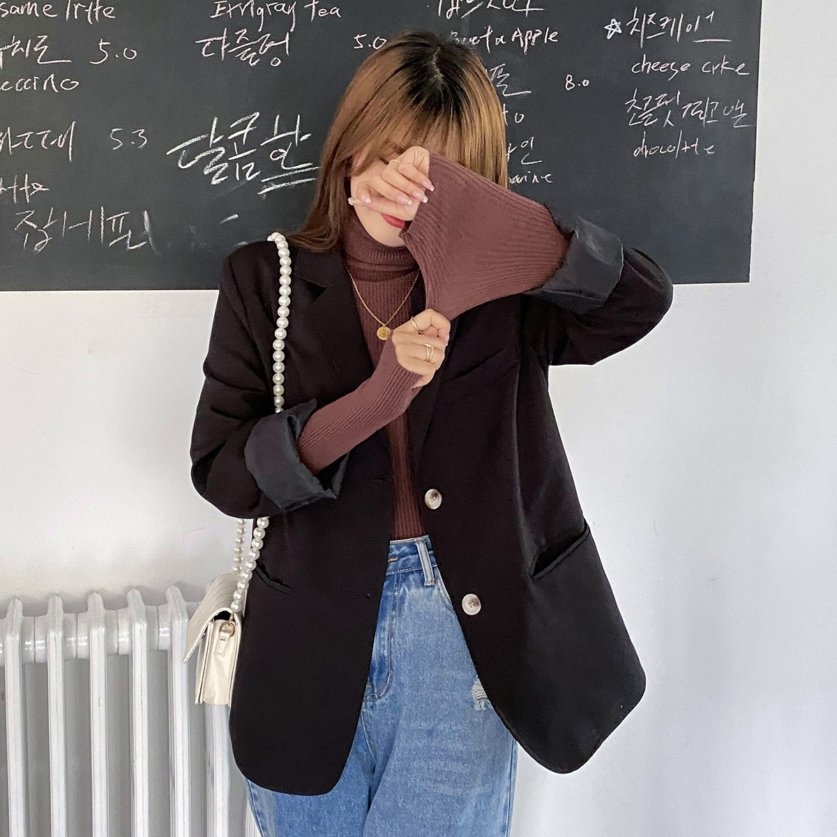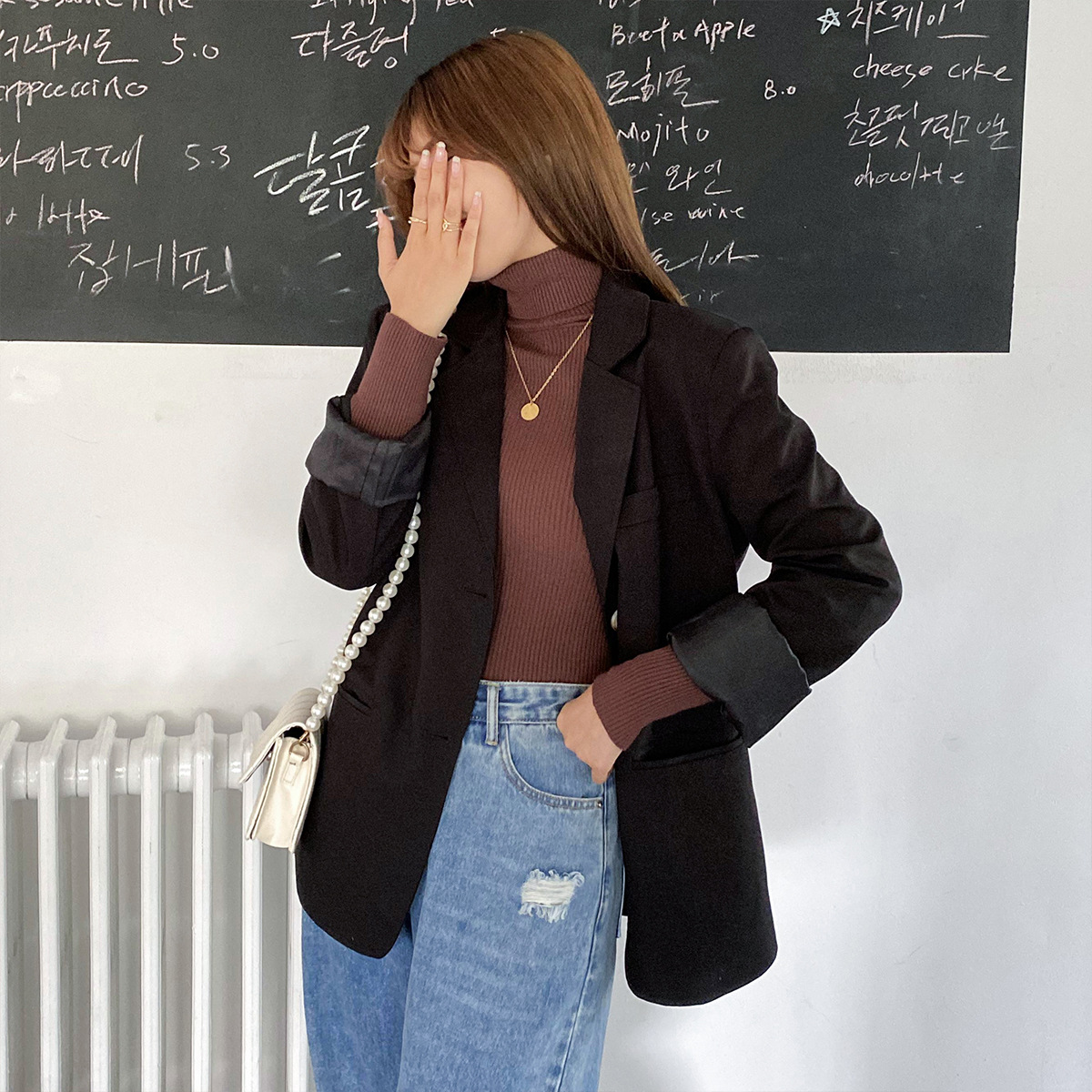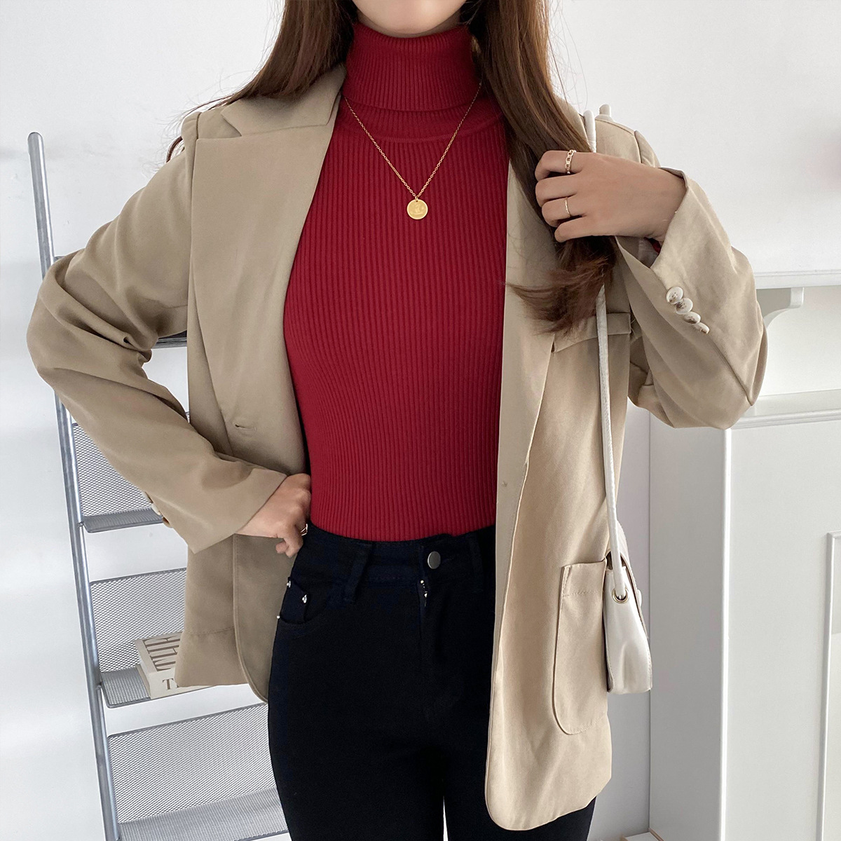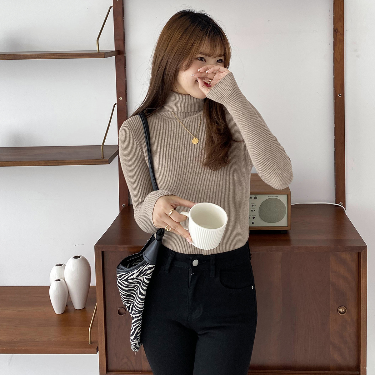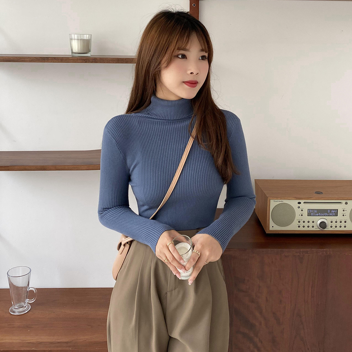 가을과 겨울 2024 새로운 여자 한국 단색 기본 올매치 두꺼운 니트 셔츠 높은 칼라 긴 소매베이스 셔츠스토어 가기