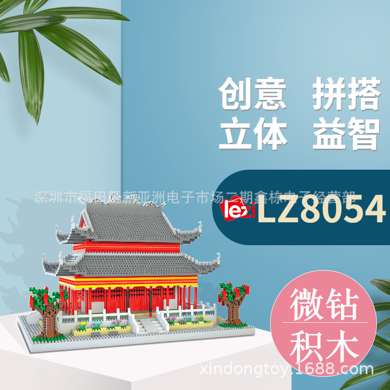 Lezi 크리에이티브 LZ8054 마이크로 다이아몬드 입자 공자 사원 어린이 교육 조립 빌딩 블록 장난감 빌딩 모델스토어 가기