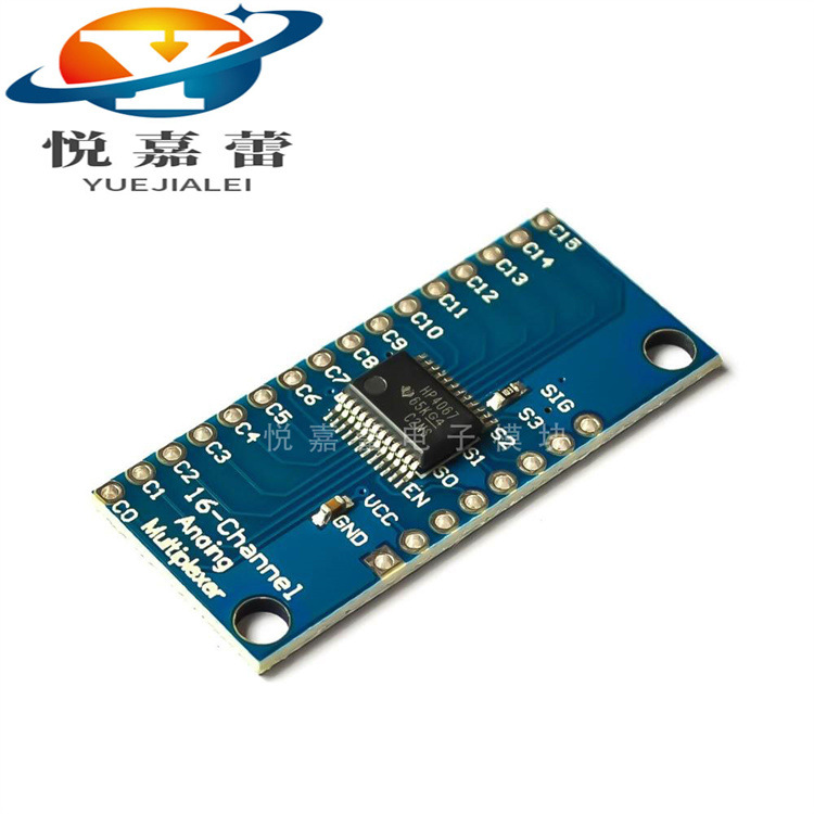 Description: This is a breakout board for the very handy 16-Channel Analog/Digital Multiplexer/Demultiplexer CD74HC4067. This chip is like a rotary switch - it internally routes the common pin (COM in the schematic, SIG on the board) to one of 16 channel pins (CHANxx). It works with both digital and analog signals (the voltage can’t be higher than VCC), and the connections function in either direction. To control it, connect 4 digital outputs to the chip’s address select pins (S0-S3), and send it the binary address of the channel you want (see the datasheet for details). This allows you to connect up to 16 sensors to your system using only 5 pins!