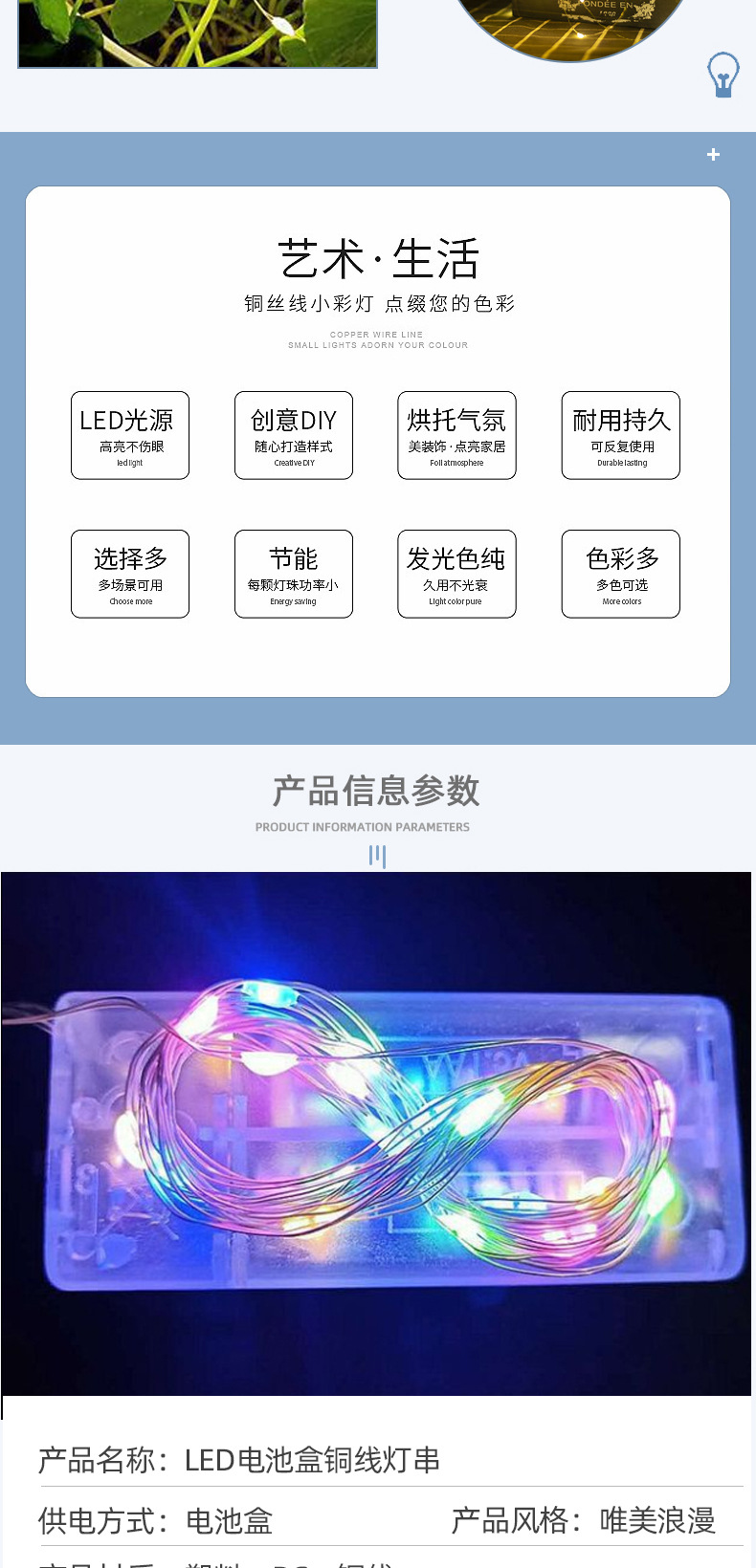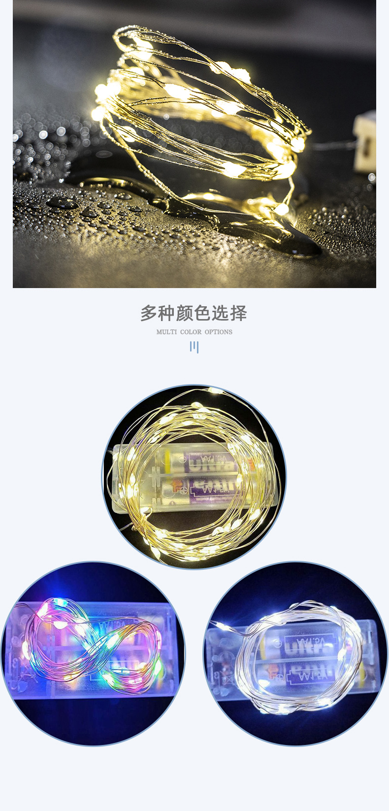 엄선된 LED 컬러 조명, 웨딩 및 휴일 장식 조명, 폭포 조명, 별빛 조명, 분위기 조명, 배터리 박스형 구리선 스트링 조명스토어 가기