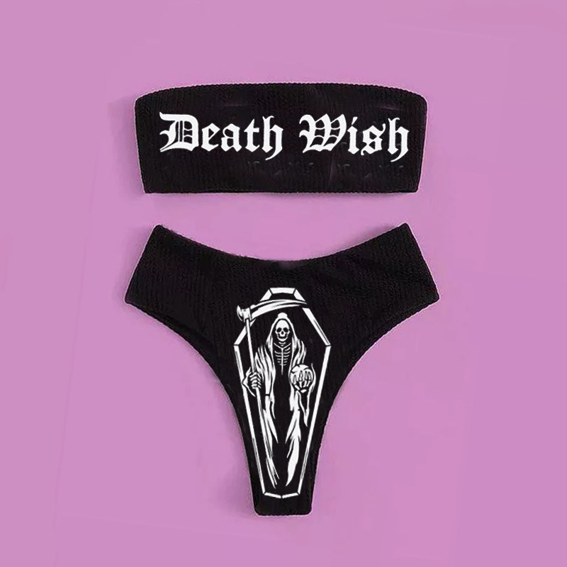 새로운 재미있는 다크 펑크 스타일 유럽과 미국 대외 무역 비키니 오프셋 섹시한 끈이없는 수영복 여성