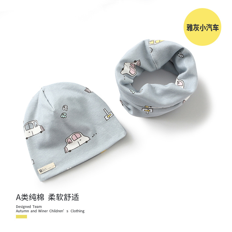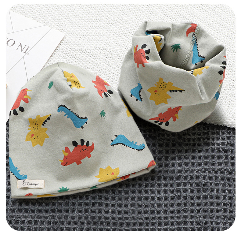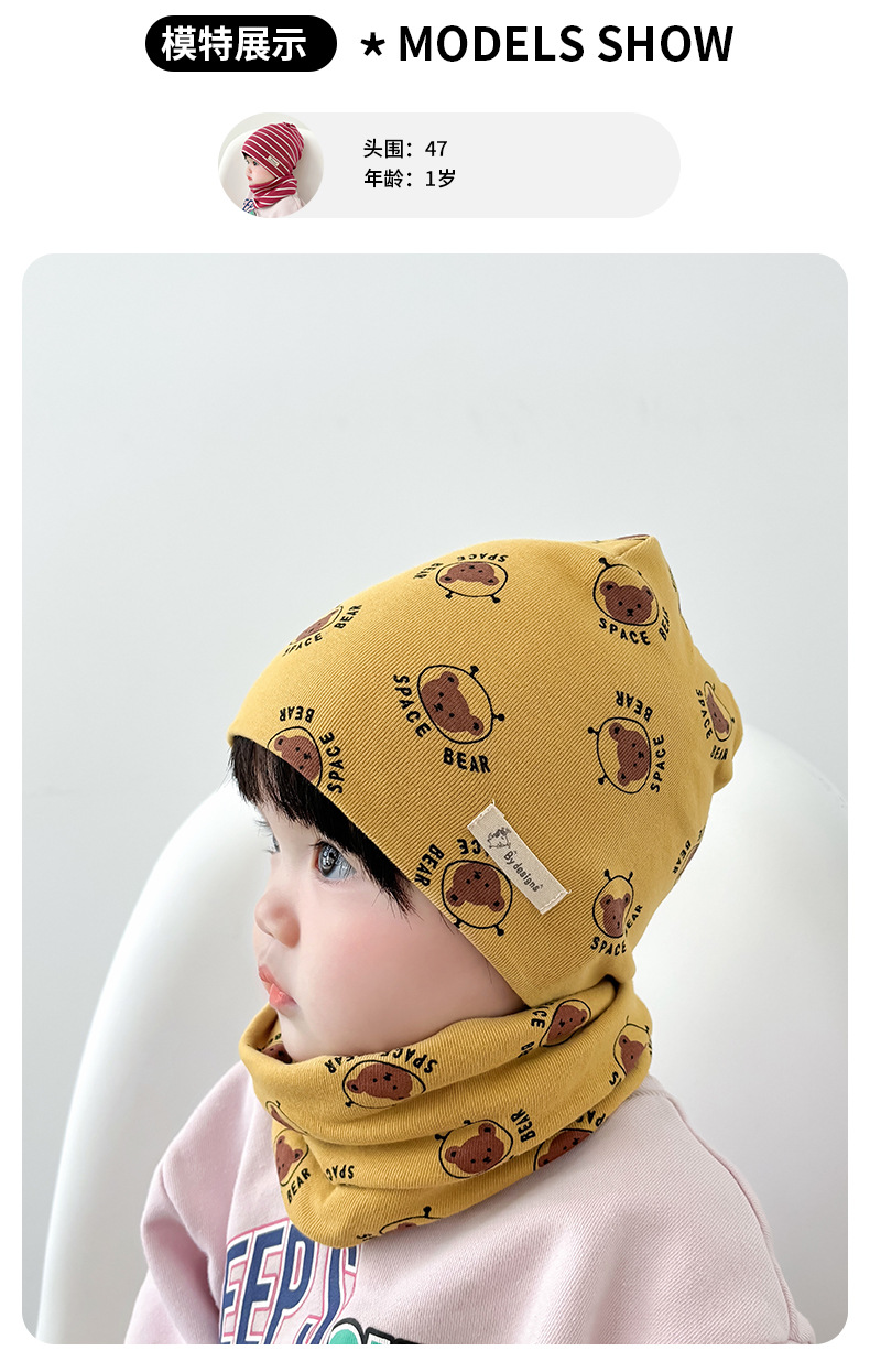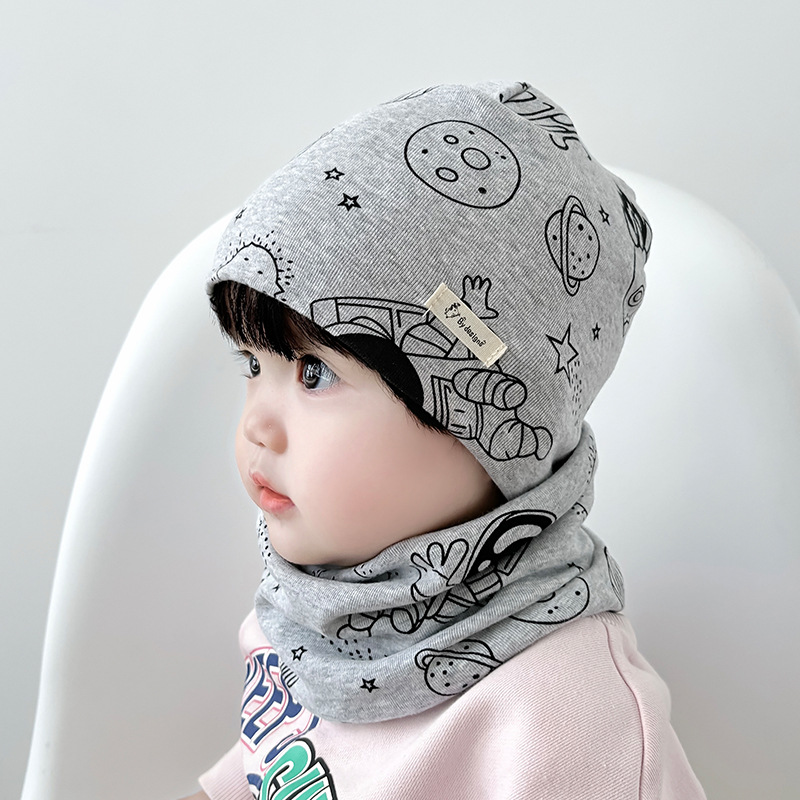 25 가을 겨울 만화 어린이 풀오버 모자와 목도리 투피스 세트 프린트 스카프 아기 모자와 목도리 세트스토어 가기