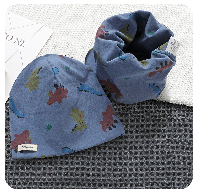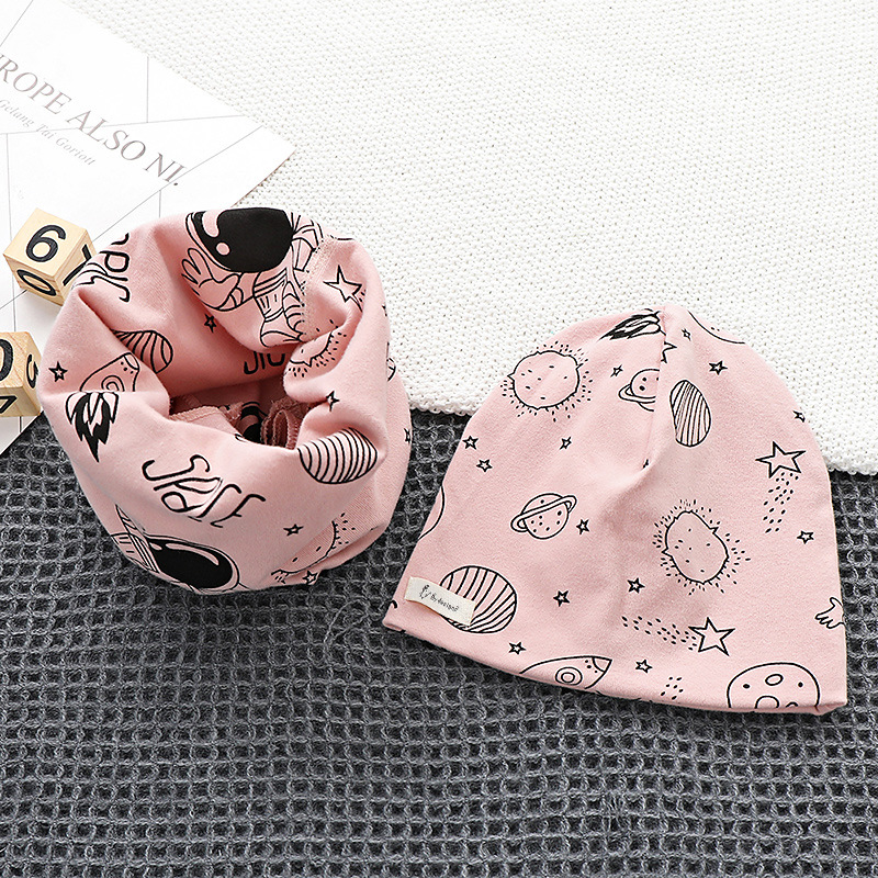 25 가을 겨울 만화 어린이 풀오버 모자와 목도리 투피스 세트 프린트 스카프 아기 모자와 목도리 세트