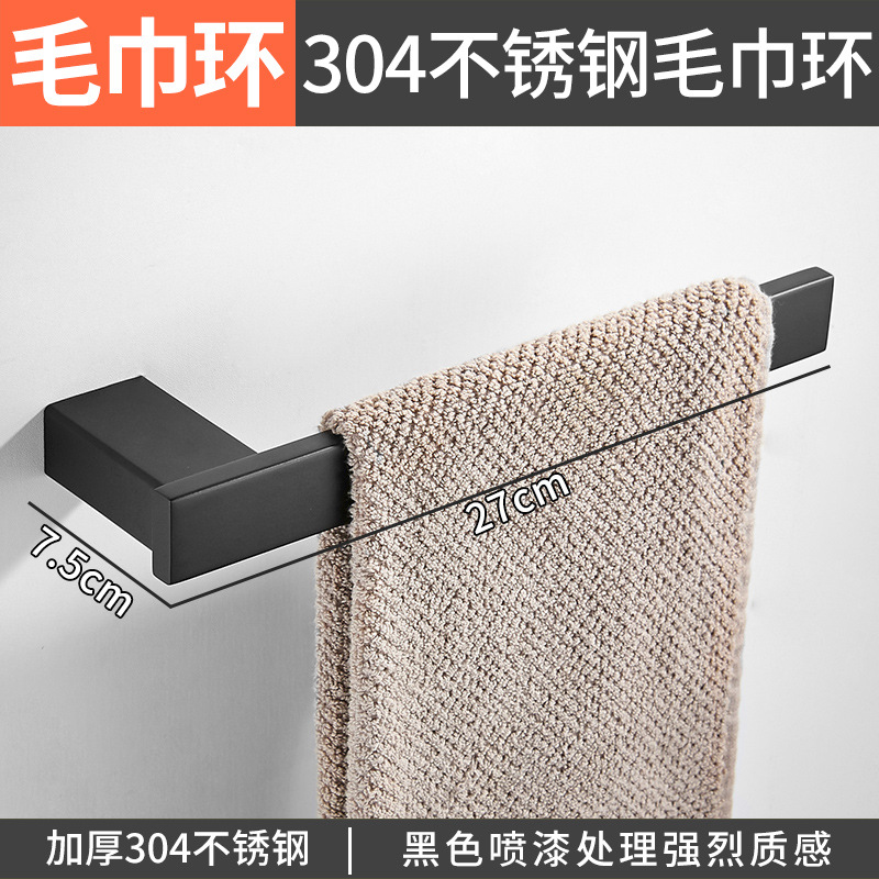 德国黑色304不锈钢毛巾架双层黑色浴巾架卫生间五金挂件套装undefined