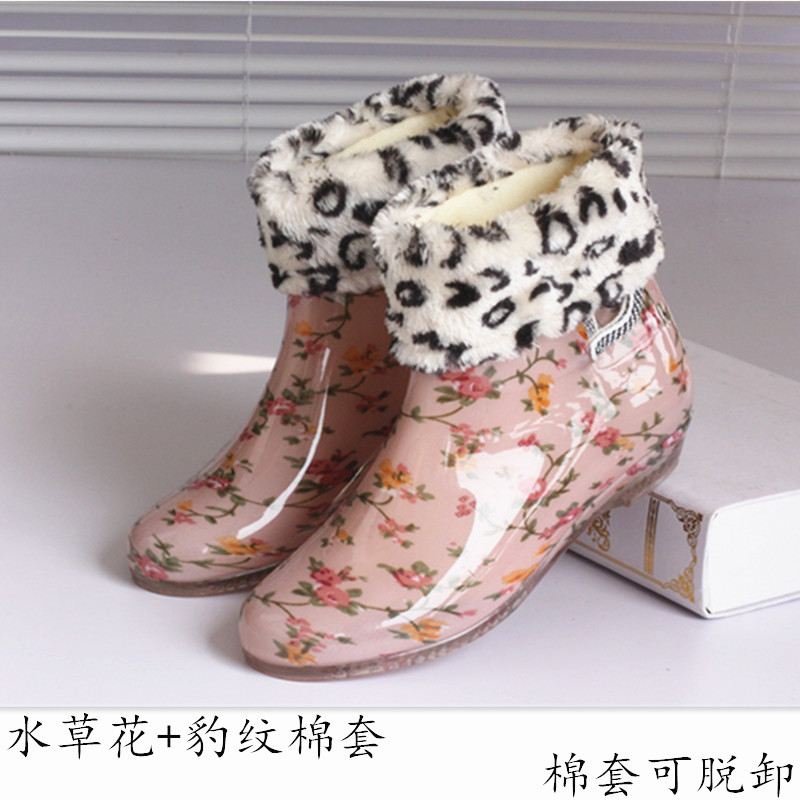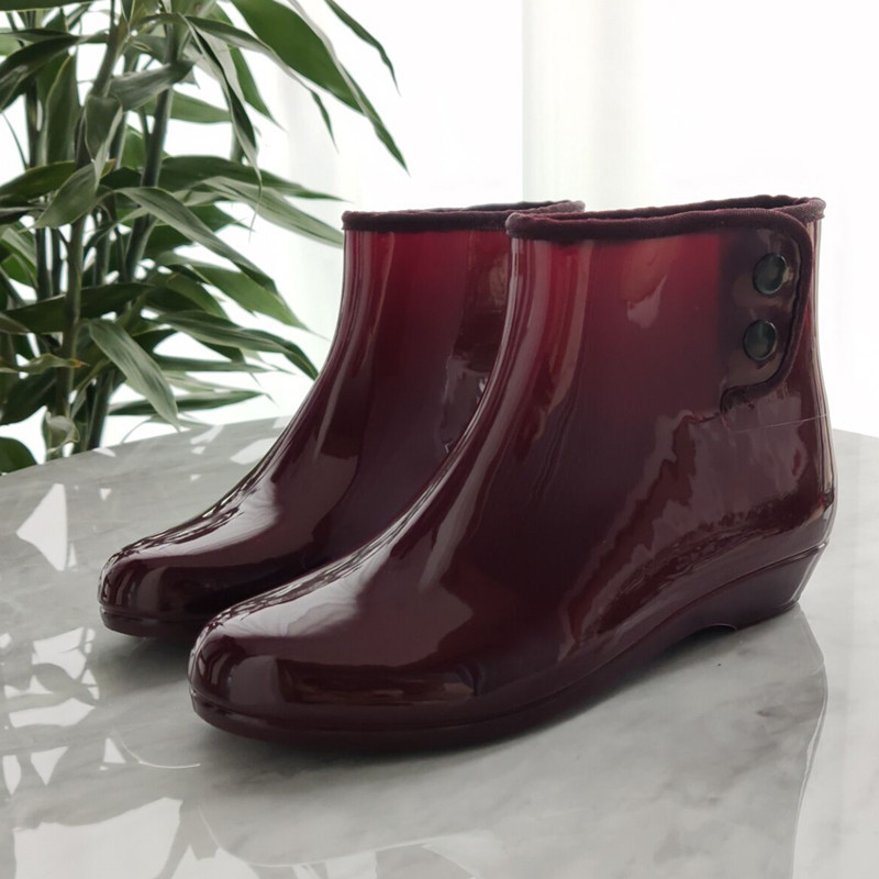 패션 장화 여성용 정원 여성용 장화 짧은 튜브 벨벳 커버 신발 물 신발 고무 신발 비와 써니 이중 목적 워터 부츠