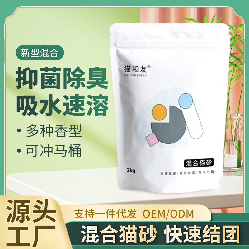 벤토나이트 고양이 쓰레기 샘플 공장 직접 도매 배송 고양이 용품과 혼합 된 두부 고양이 쓰레기