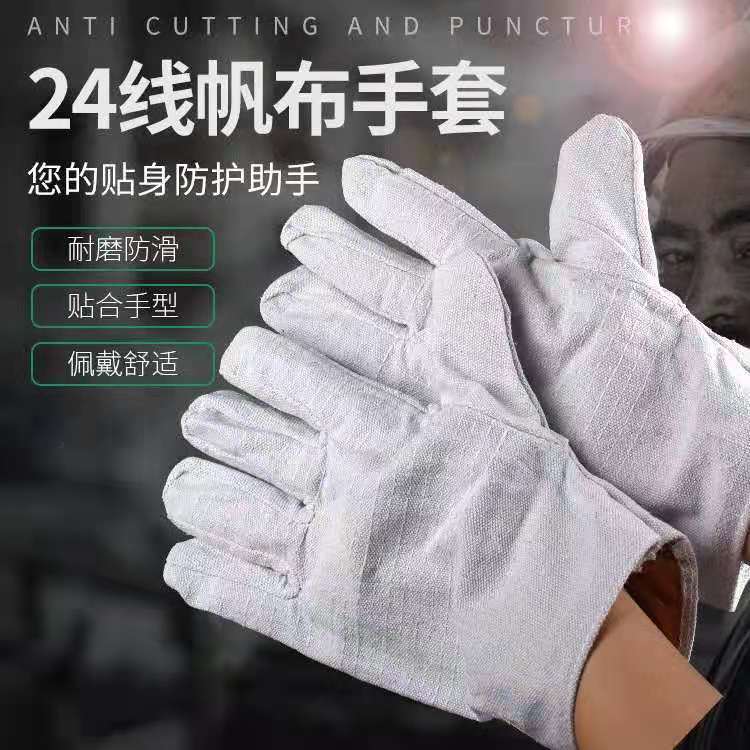 재고 도매 노동 보호 캔버스 장갑 공장 직접 선반 작업 이중 안감 내마모성 흰색 갑옷 24 줄 두껍게스토어 가기