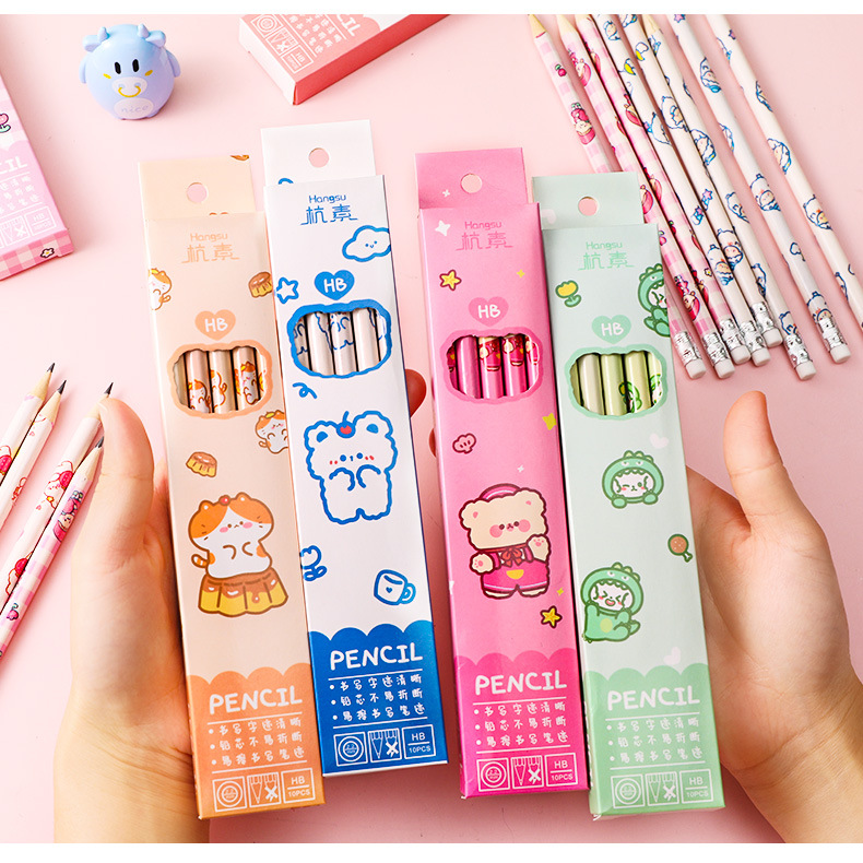 학생 쓰기 그리기 스케치 펜 학생 문구 HB 연필 지우개 만화 10 팩 상자 연필스토어 가기
