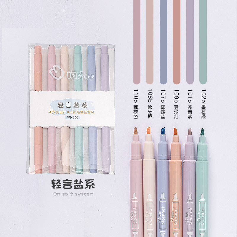 라운드 눈 보호 소프트 헤드 형광펜 6 색 세트 학생 마크 페인팅 더블 헤드 마커 펜 컬러 마커 펜