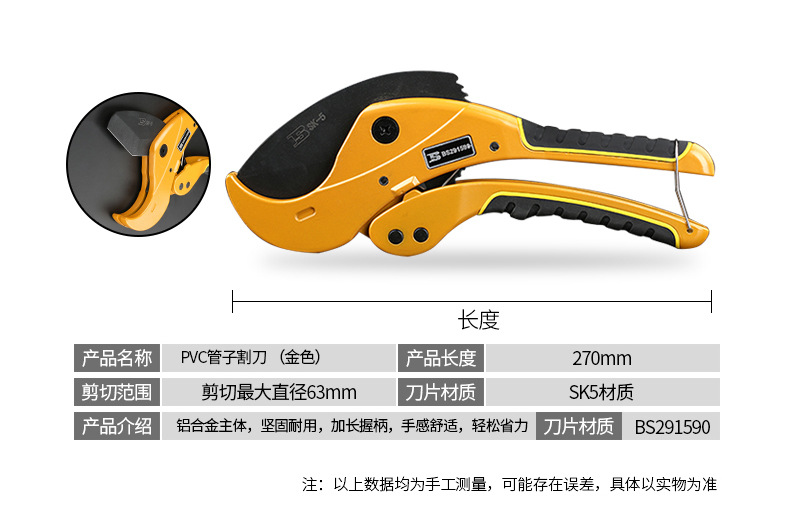 • 휴대용 PVC 파이프 커터(골드) 최대 전단 32mm BS293632
