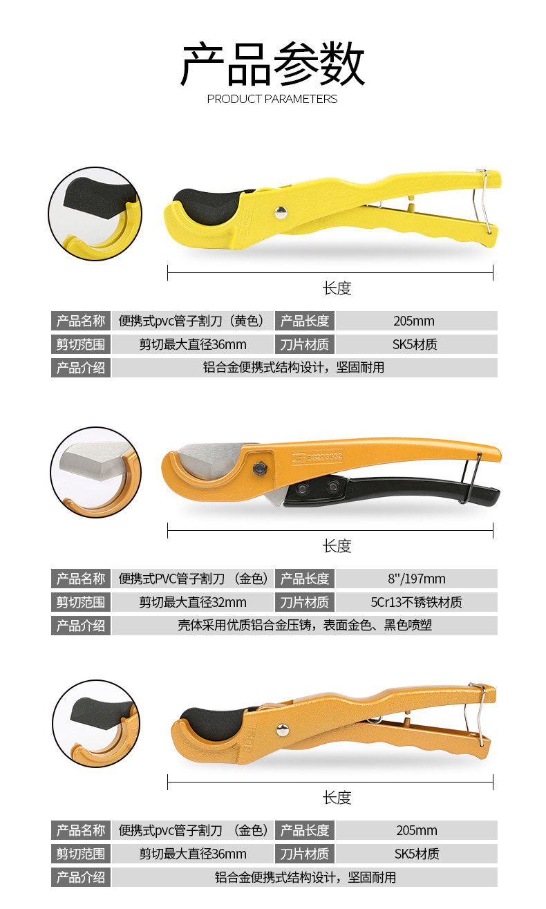 • 휴대용 PVC 파이프 커터(골드) 최대 전단 36mm BS293626