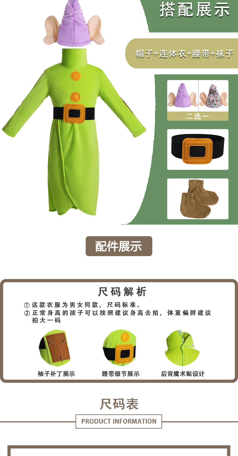 크리스마스 키즈 애니메이션 만화 지니 원피스 큰 귀 코스프레 일곱 난쟁이 의상스토어 가기