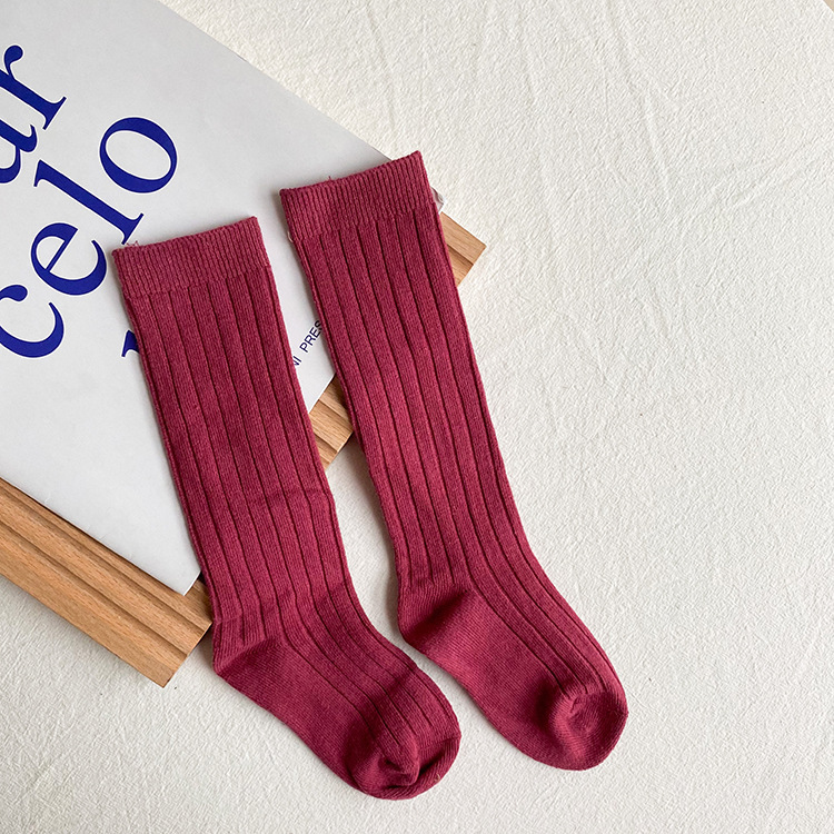어린이 양말 가을 2021 아기의 중간 배럴 모든 매치 단색 구덩이 면 양말 통기성 캐주얼 스타킹 소년과 소녀를 위한 유행