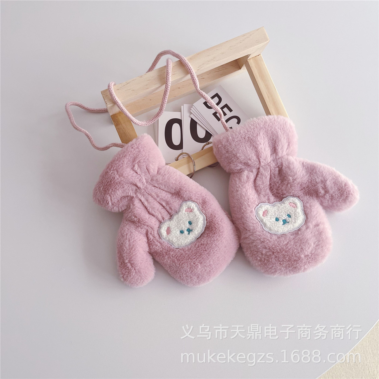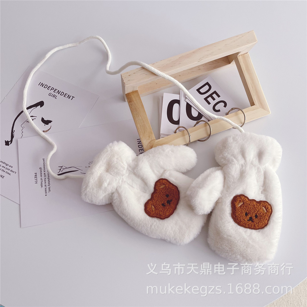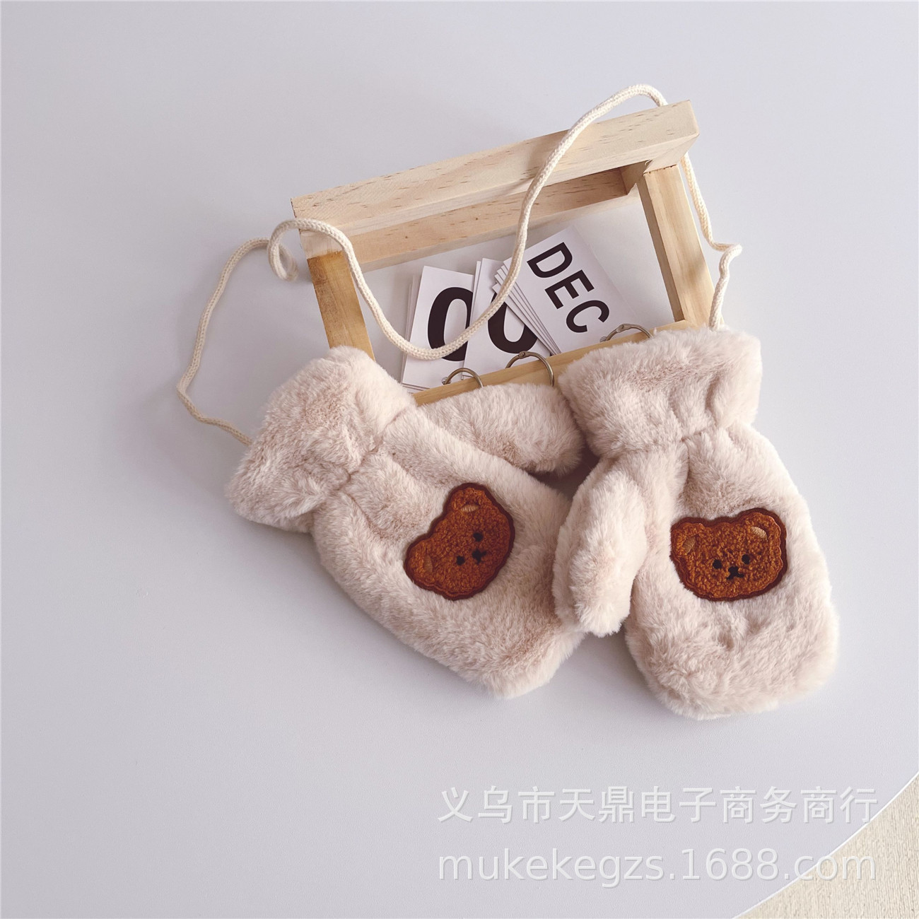 한국 어린이 봉제 장갑 겨울 기모 따뜻한 귀여운 곰 두꺼운 목 장갑 학생스토어 가기