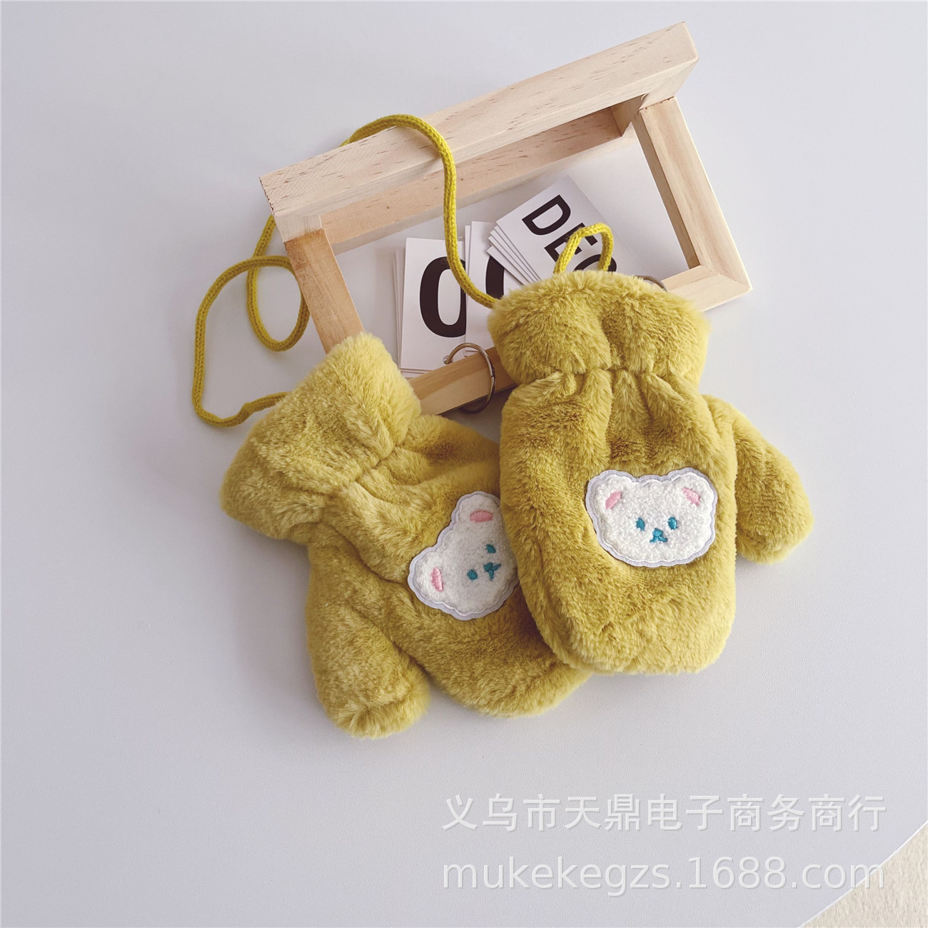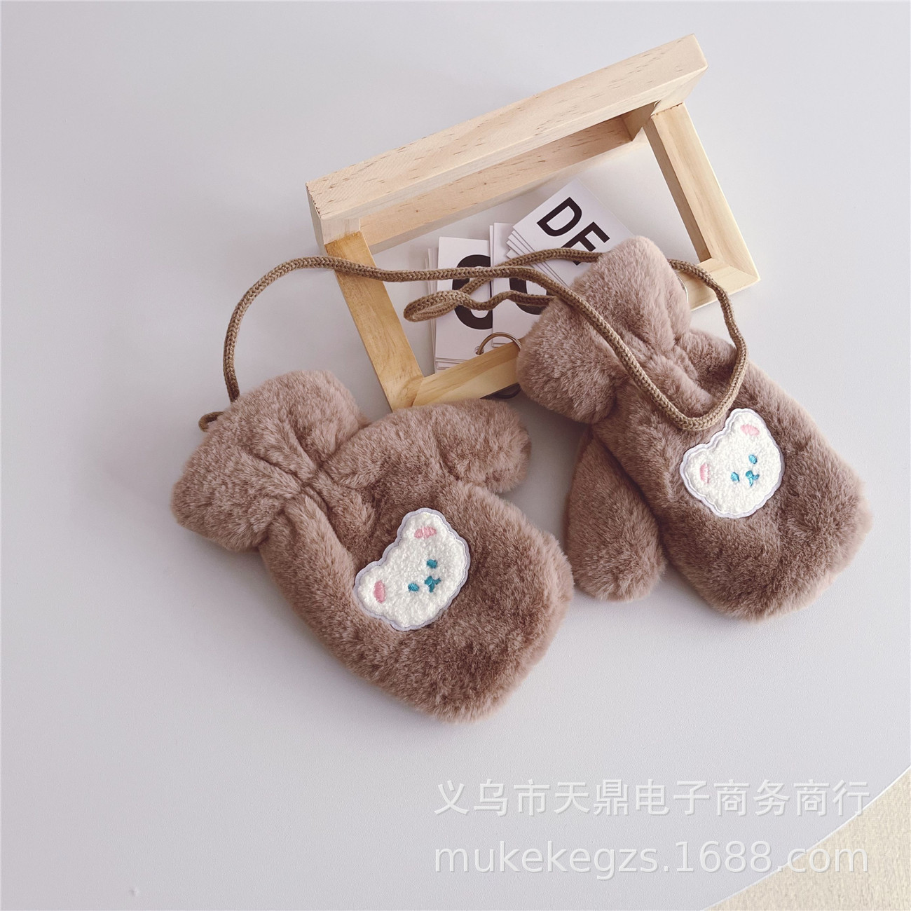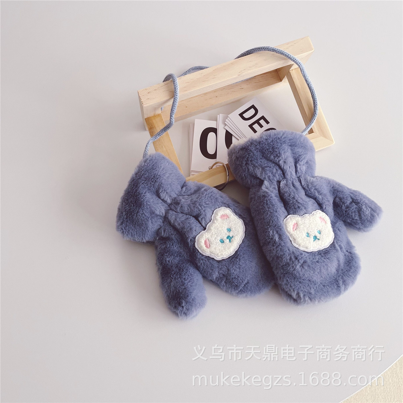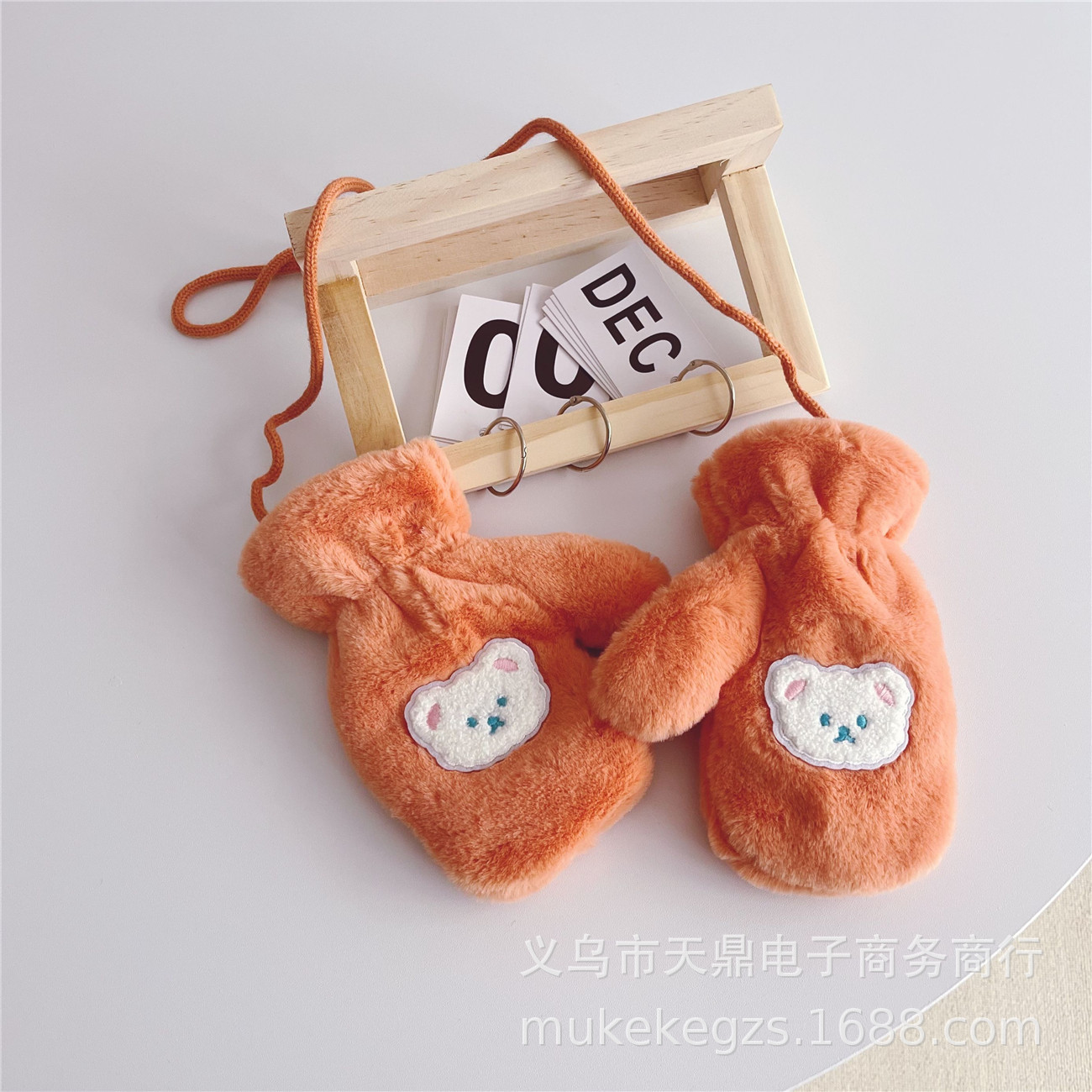 한국 어린이 봉제 장갑 겨울 기모 따뜻한 귀여운 곰 두꺼운 목 장갑 학생스토어 가기