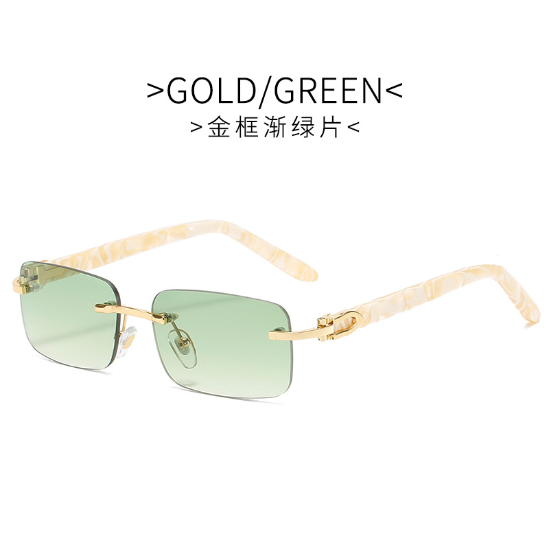 2023 새로운 카드 홈 작은 상자 프레임리스 플레이트 선글라스 여성용 선글라스 남성용 구미 패션 개성 젤리 옵티컬 미러스토어 가기