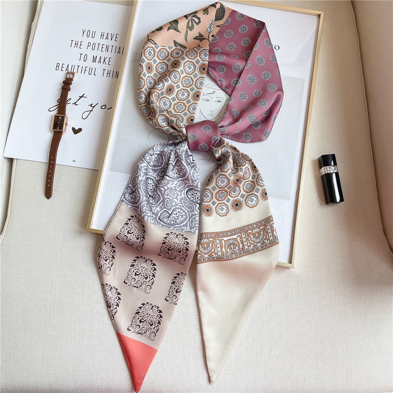 프랑스 스타일 우아한 달콤한 넥타이 헤어 리본 캐슈 인쇄 실크 스카프 긴 베벨 스카프 헤어 밴드 여성을위한 패션 직장 헤어 액세서리