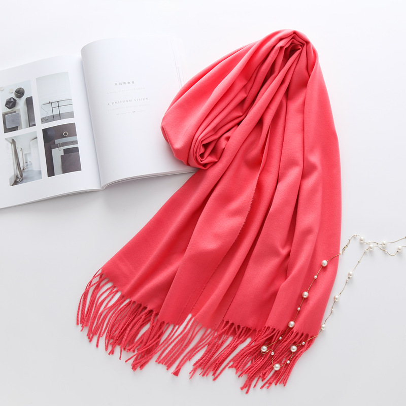모조 캐시미어 6가지 단색 스카프, 여성용 단색 두꺼운 보온 숄, 빨간색 스카프 도매 및 배송스토어 가기