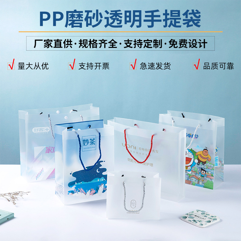 Pp 토트 백 도매 투명 젖빛 핸드 백 선물 포장 백 쇼핑 비닐 백 인쇄 광고 로고