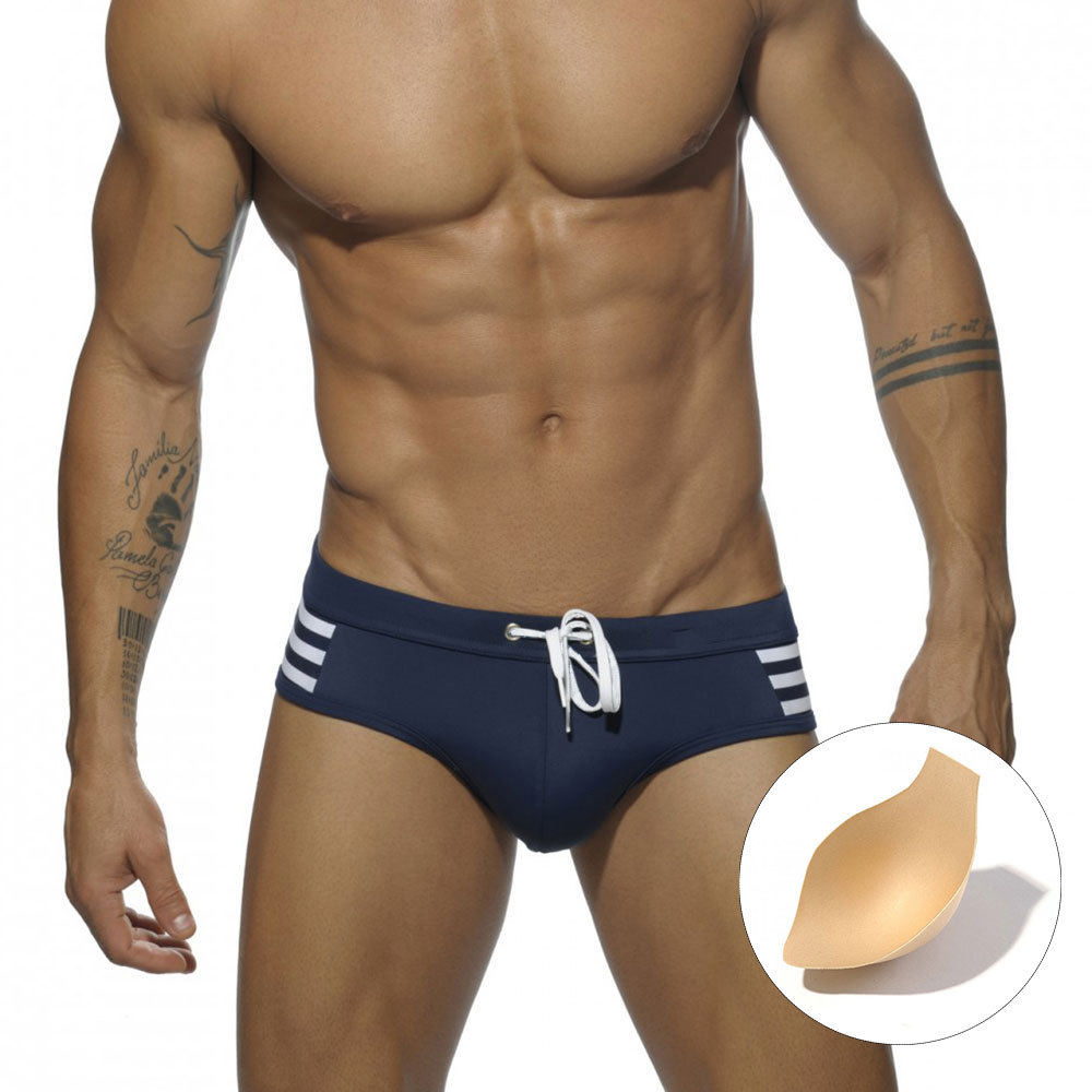 UXH 크로스 보더 심플 사이드 스트라이프 패션 삼각형 수영 반바지 컵 당황 방지 비치 브리프