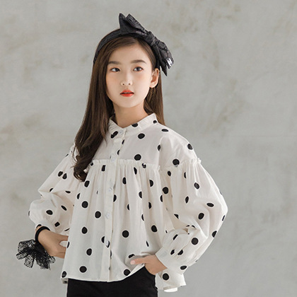 새로운 어린이 여성용 폴카 도트 탑 달콤한 우아한 긴팔 탑 한국 스타일 중형 어린이 웨스턴 스타일 캐주얼 올 매치 스타일