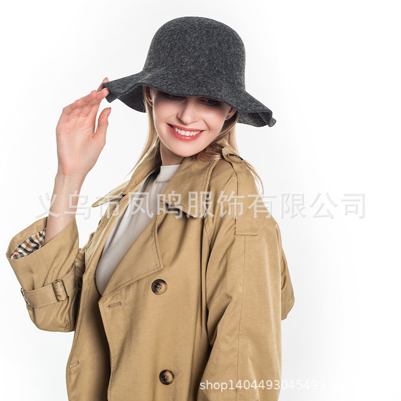 모자 여자의 겨울 패션 울 펠트 모자 한국식 큰 챙 모조 울 탑 모자 영국 물결 모양 가장자리 울 모자스토어 가기