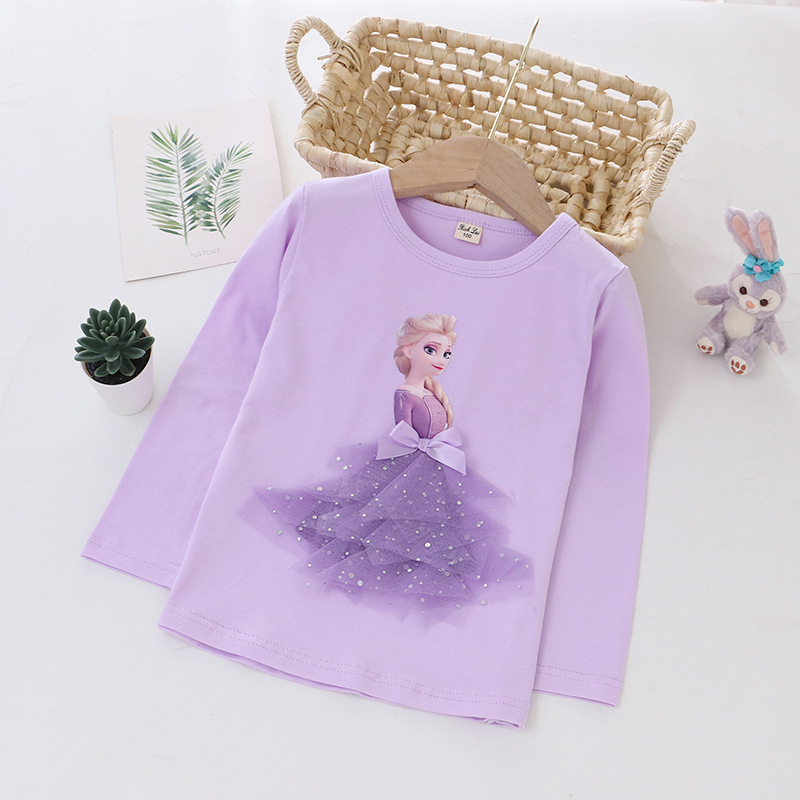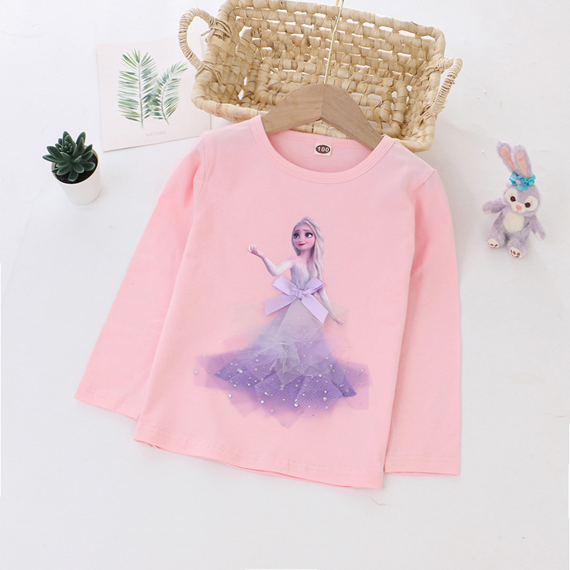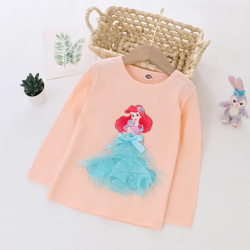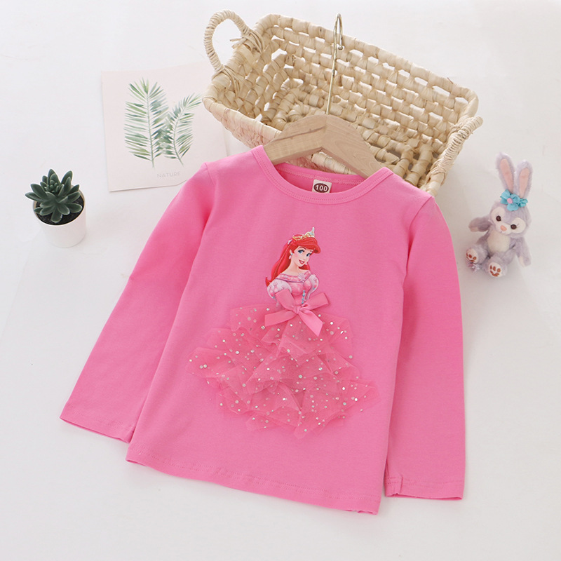 2025 아동복 봄, 가을 신작 여아 바닥 셔츠 입체 공주 티셔츠 탑 긴팔 대외 무역 국경 아마존