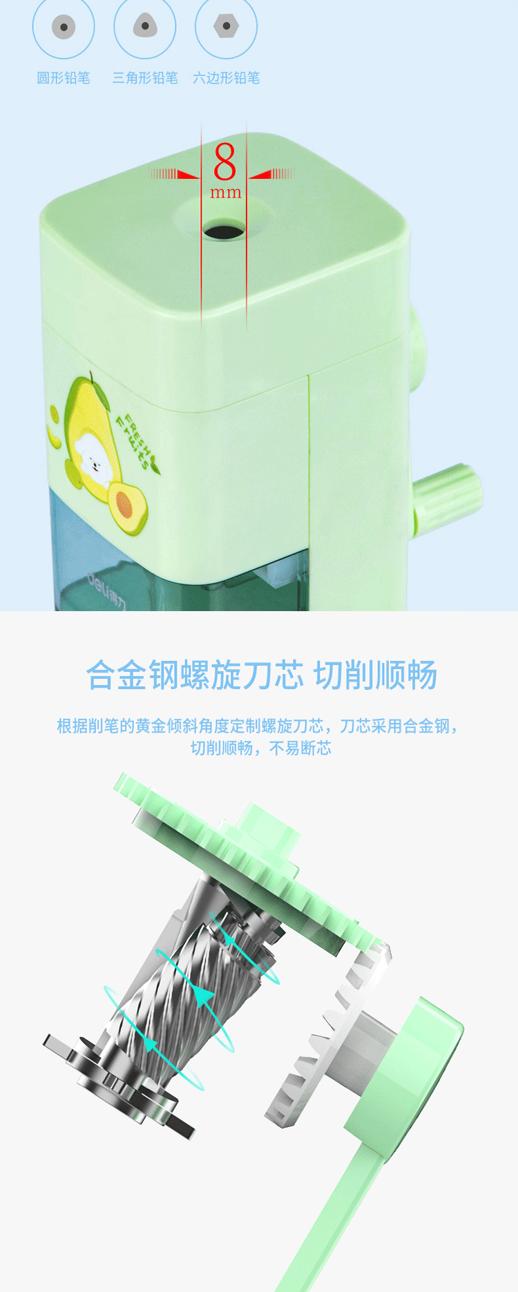 델리 71154 연필 깎이 자동 연필 깎이 귀여운 만화 손 연필 깎이 초등학교 유치원
