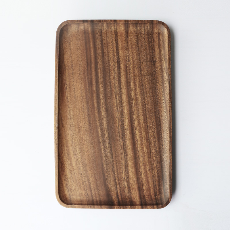 단단한 나무 대형 트레이 티 트레이 아카시아 로그 단색 커피 플레이트 직사각형 호두 플랫 플레이트 디너 트레이 티 트레이