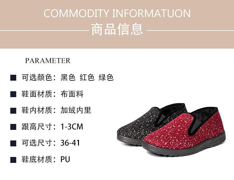 오래 된 베이징 천 신발 겨울 기모 여자의 면 신발 따뜻한 미끄럼 방지 부드러운 단독 두 면 오래 된 어머니 면 신발 노인스토어 가기