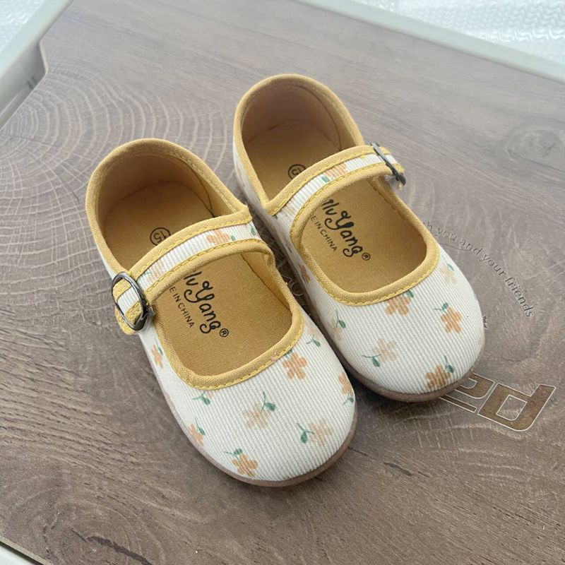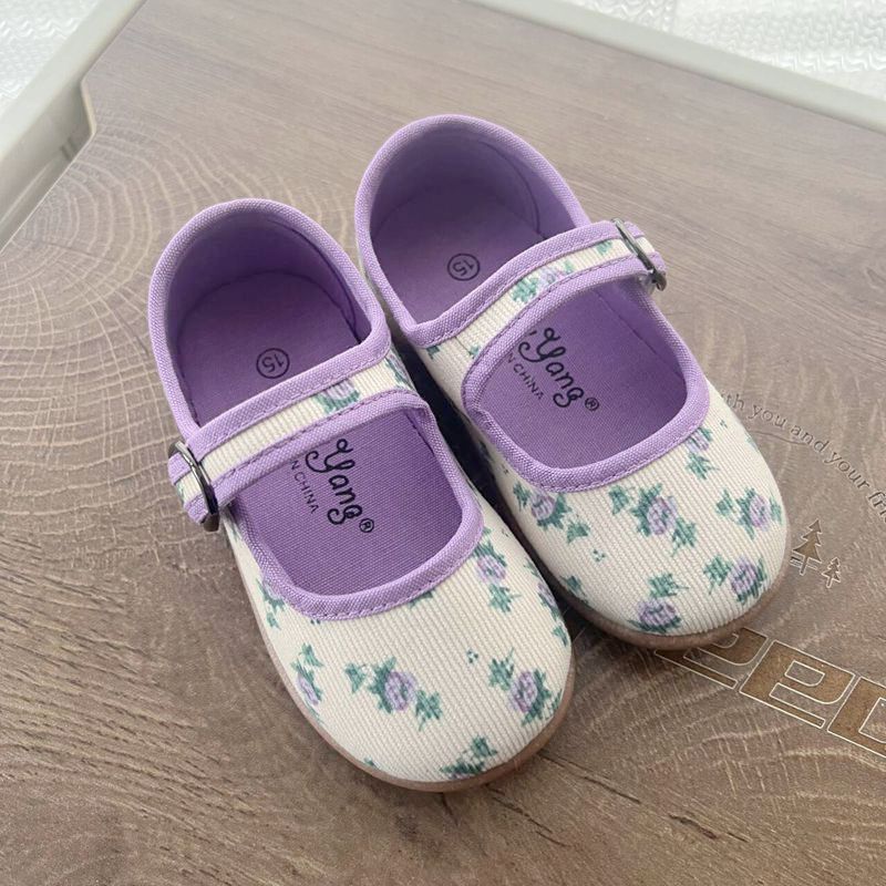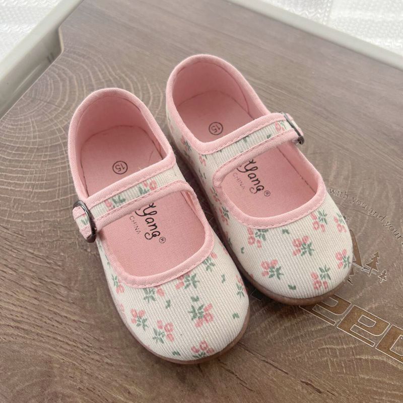 봄과 가을 2025 Corduroy 꽃 캔버스 신발 소녀 유치원 사각 입 실내 신발 1-8 년 동안 부드러운 단독 미끄럼 방지