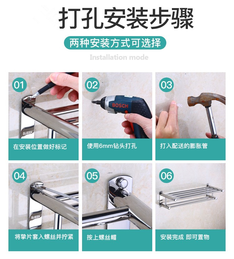 수건 걸이 스테인레스 스틸 수건 걸이 304 욕실 하드웨어 펜던트 욕실 랙 2 층 화장실 타월 바