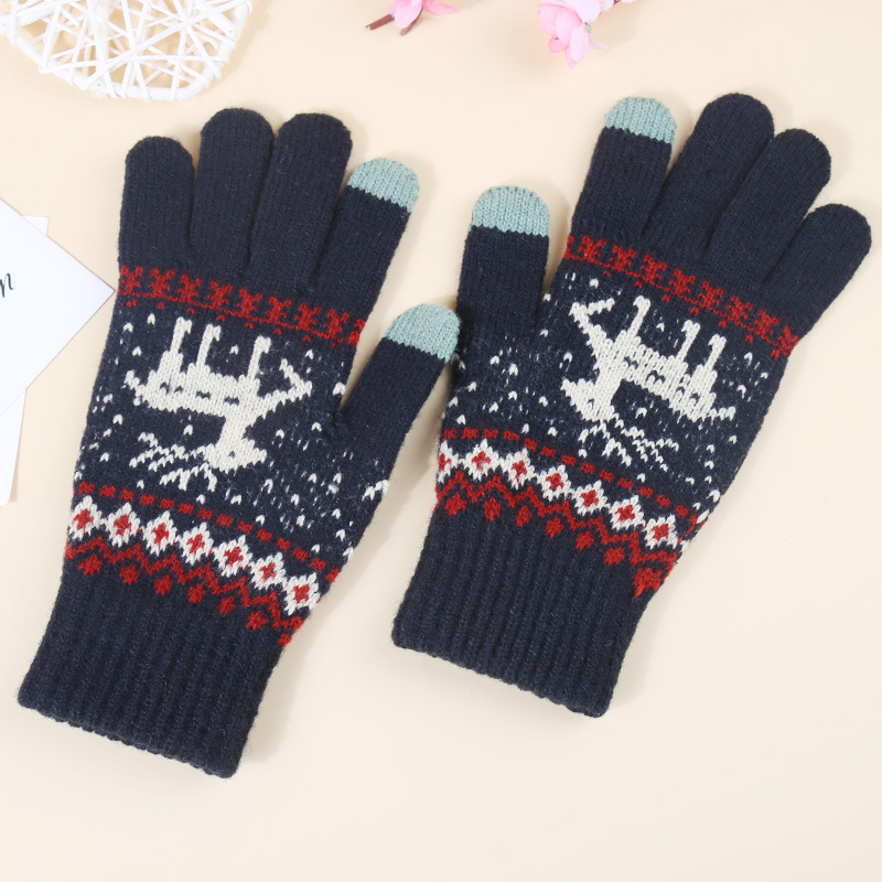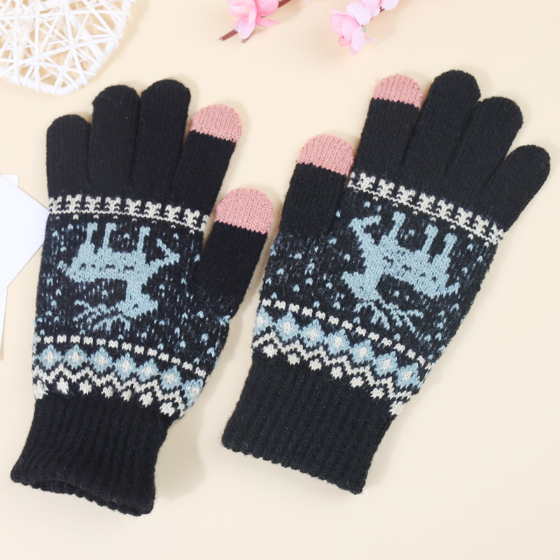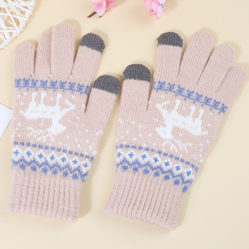 통관 따뜻한 장갑 여성용 방한 가을과 겨울 새 새끼 사슴 자카드 색상 매칭 남성용 니트 터치 스크린 장갑스토어 가기