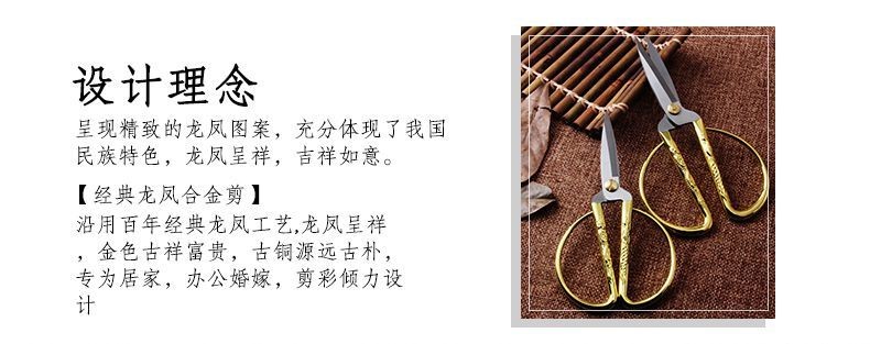 종이 컷 창 컷 스테인레스 스틸 용과 피닉스 가위 핸드 테일러 가정용 가위 오픈 리본 커팅 웨딩 빈티지 골드 가위