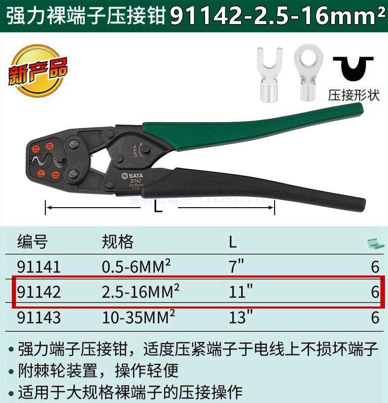 • 1.91142 강력한 베어 터미널 압착 플라이어 2.5-16MM2