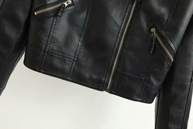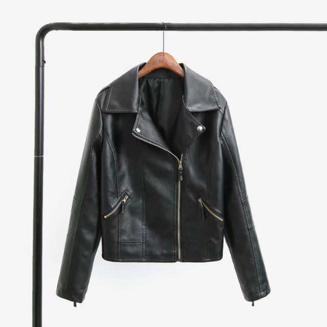가죽 자켓 여성 2022 새로운 봄, 가을 한국 스타일 유행 옷깃 오토바이 자켓 짧은 코트 pu 가죽 자켓 여성 작은 가죽 자켓