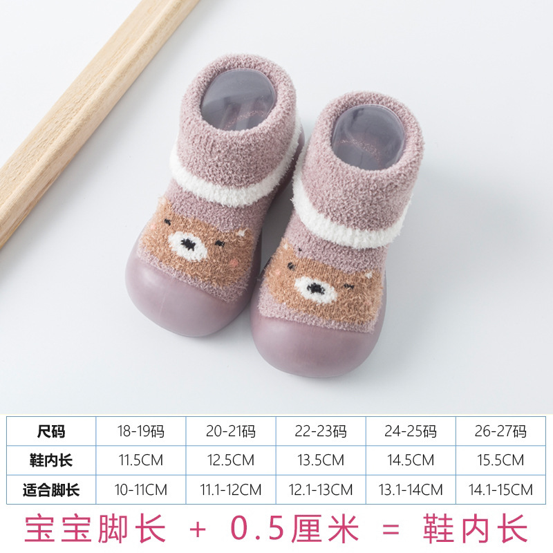 어린이 아기 유아 신발 부드러운 단독 미끄럼 방지 바닥 신발 실내 양말 신발 아기 가을과 겨울 바닥 양말 두꺼운 따뜻한