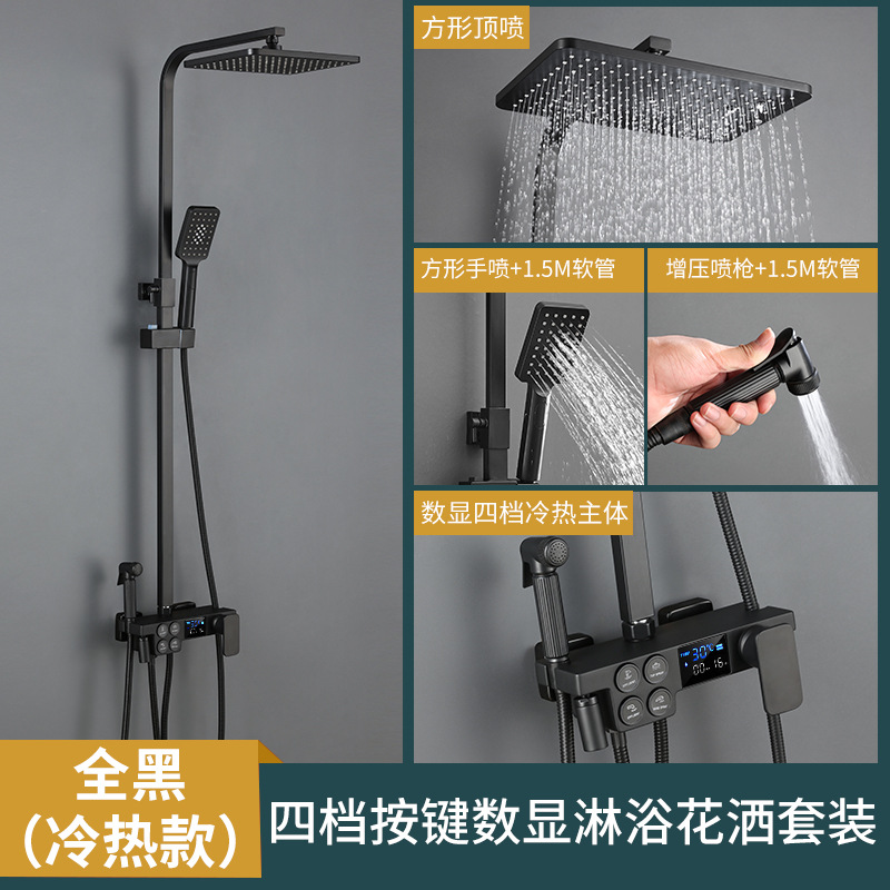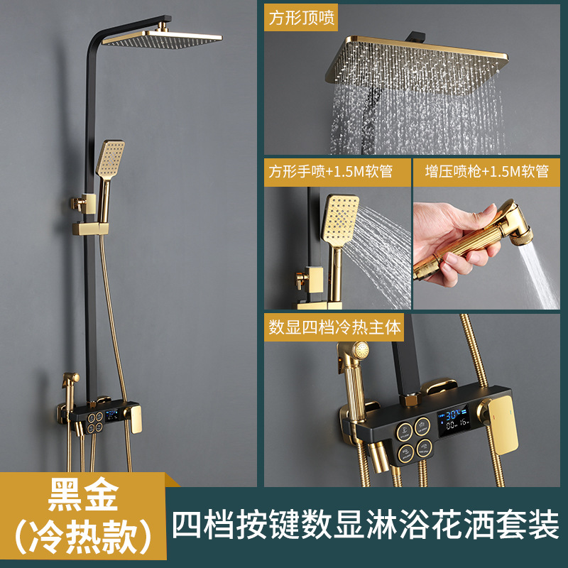 블랙 골드 샤워 세트 가정용 모든 구리 사각형 일정 온도 욕실 샤워 샤워 샤워 헤드스토어 가기