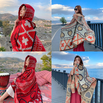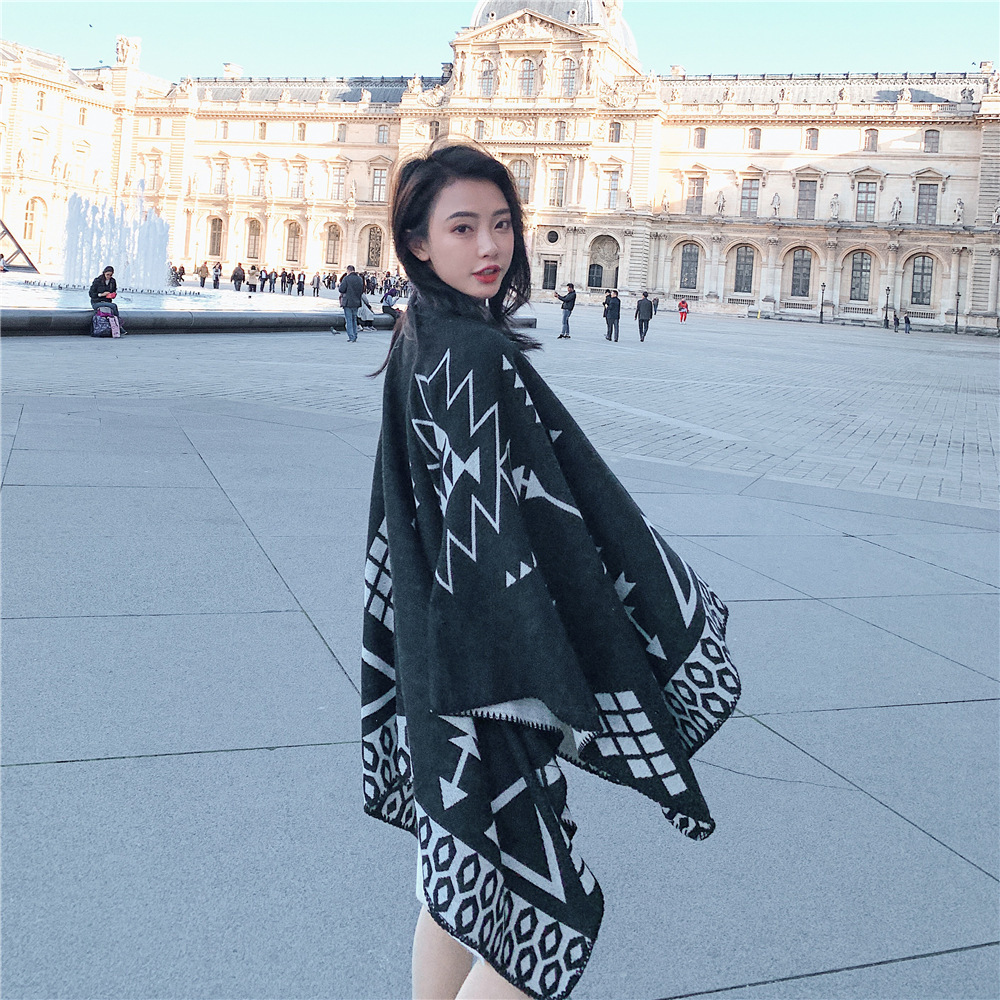 가을과 겨울 케이프 스타일 숄 여성 코트 영국 한국식 에어컨 이중 사용 대형 겨울 스카프 케이프 여행