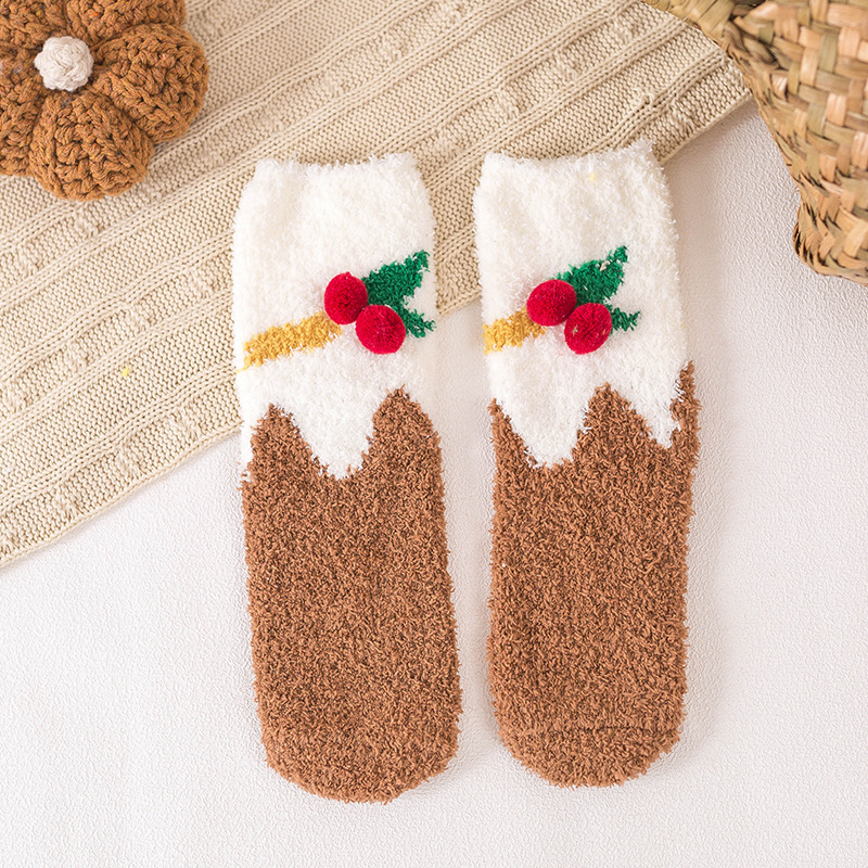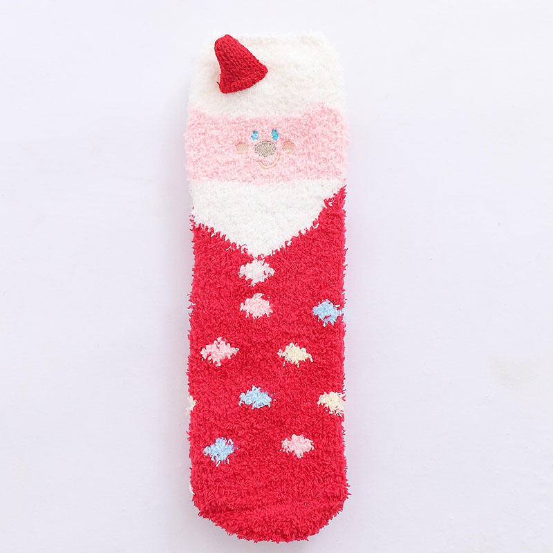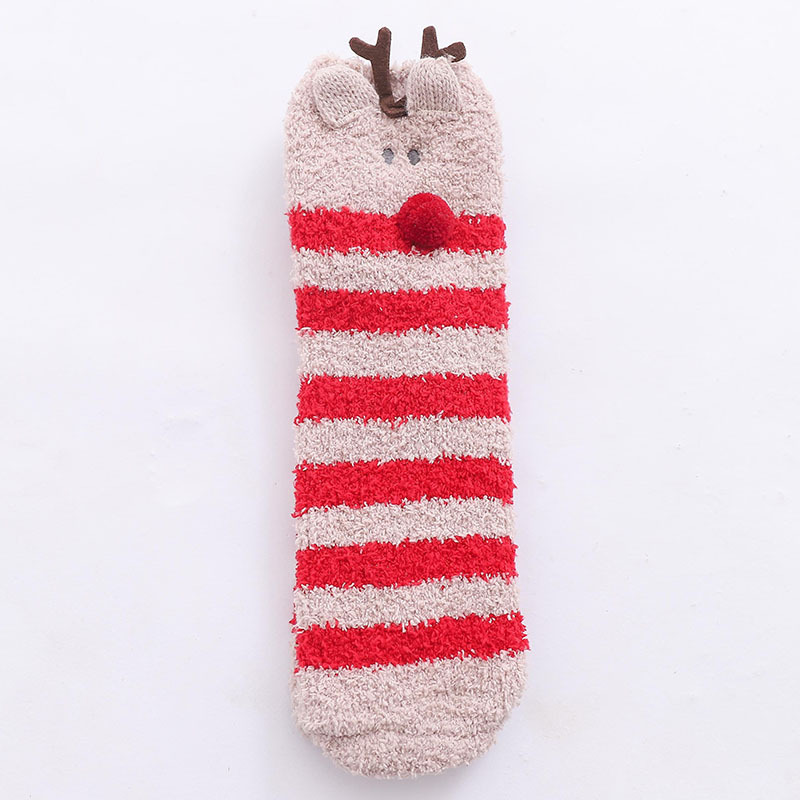 29 만화 스트레이트 자수 입체 동물 산호 양털 크리스마스 따뜻한 가정 바닥 양말 반 벨벳 튜브 양말